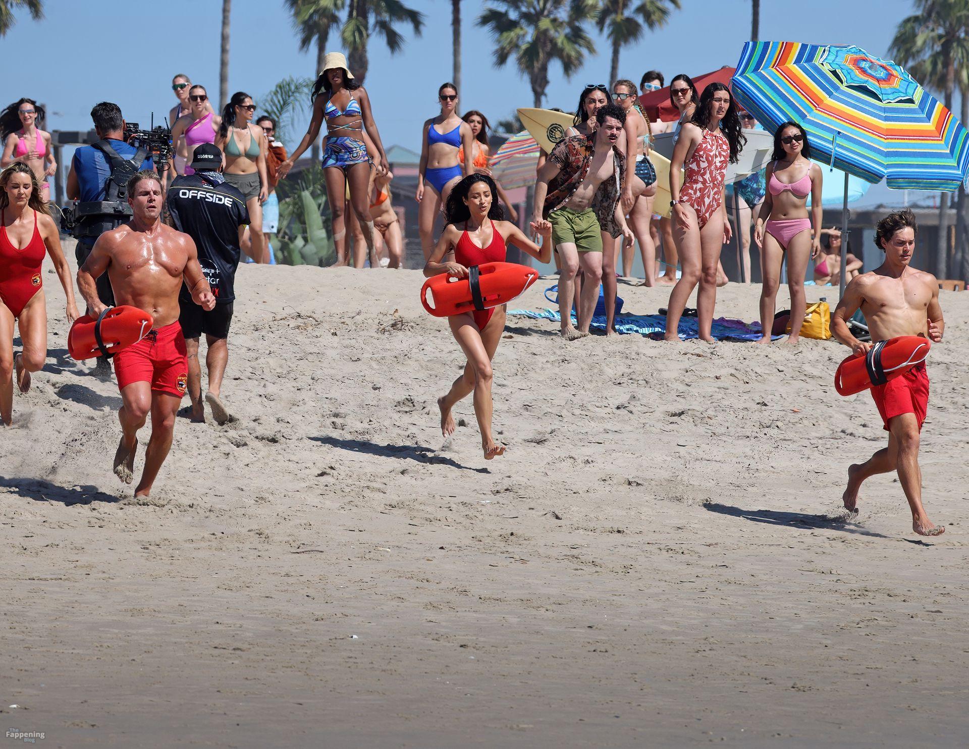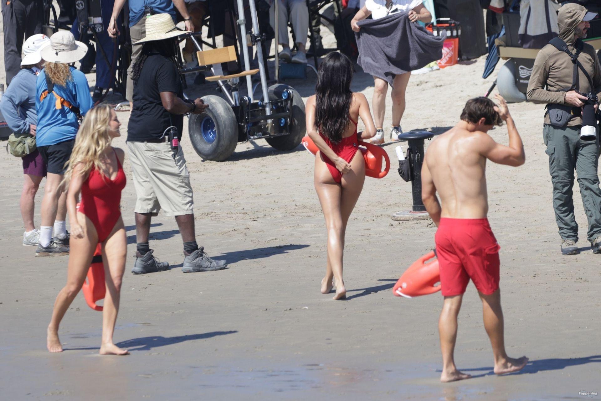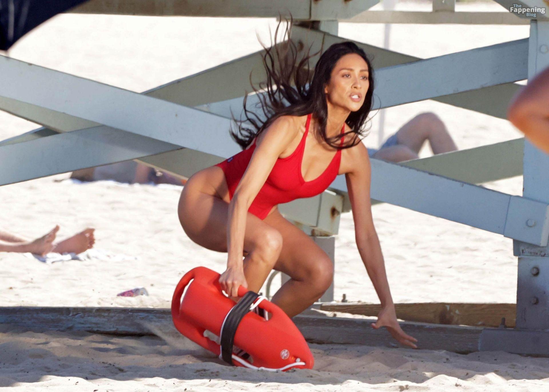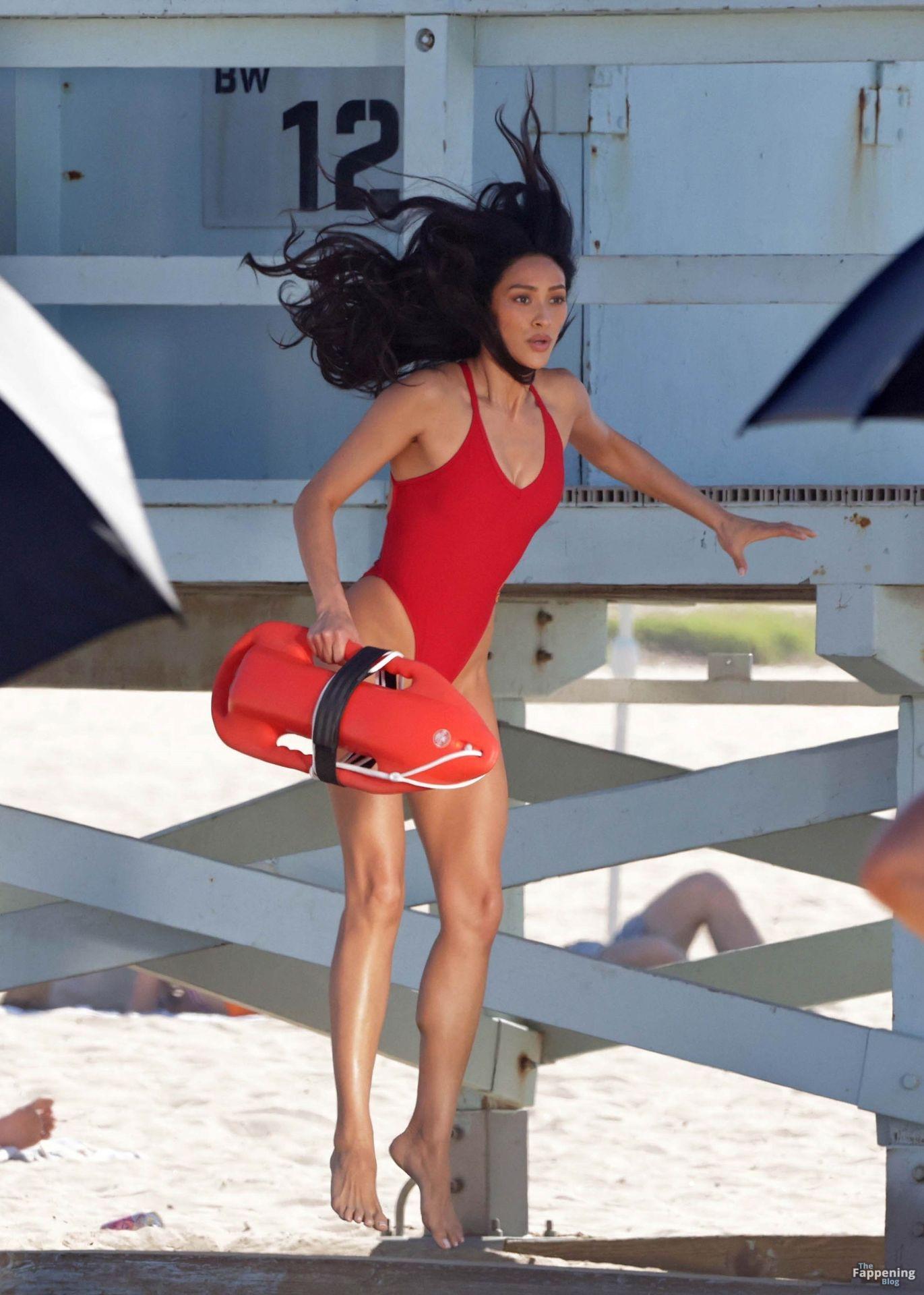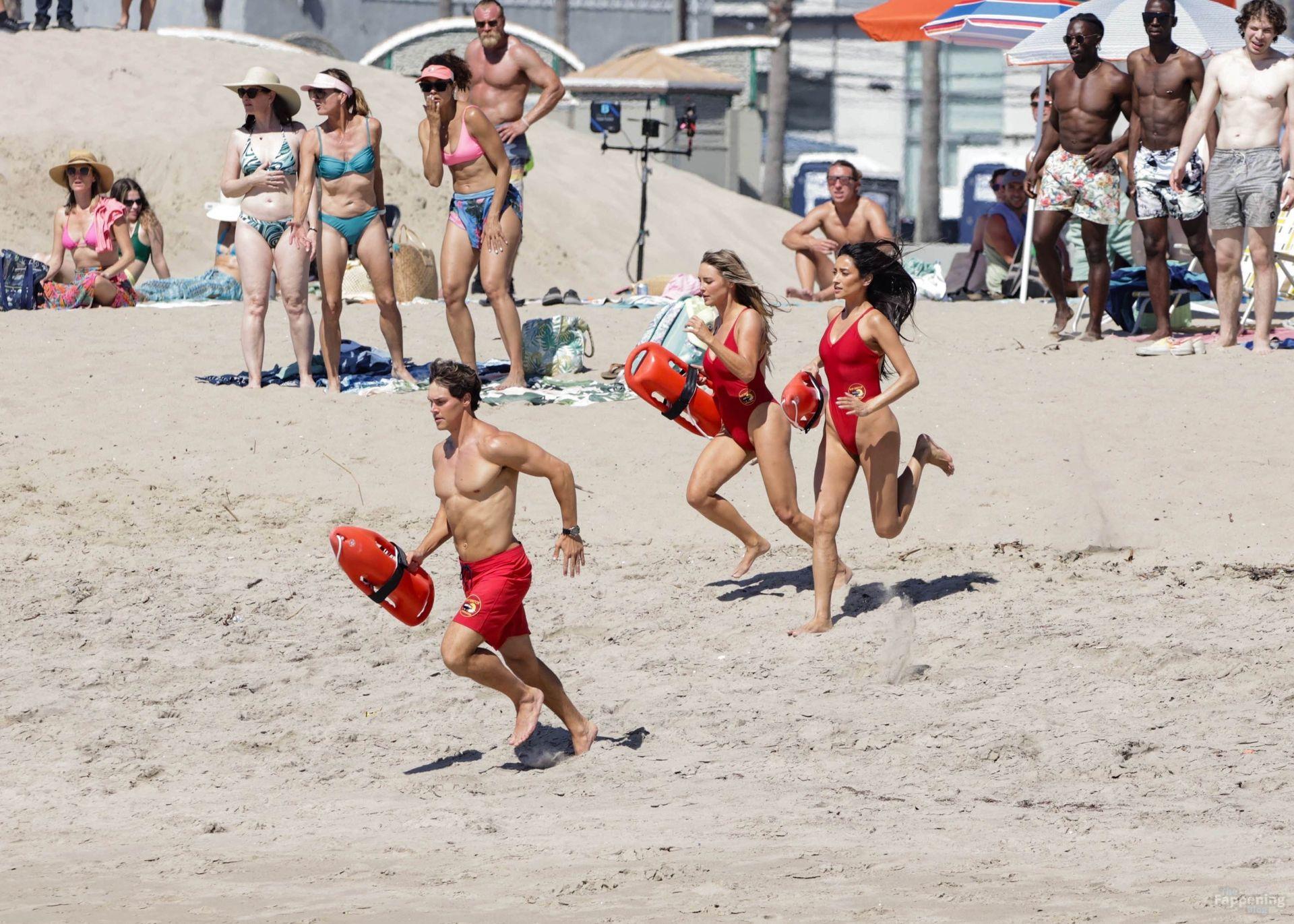 Shay Mitchell displayed her sexy beach-ready body while filming scenes this morning for Fox’s “Baywatch” Reboot.