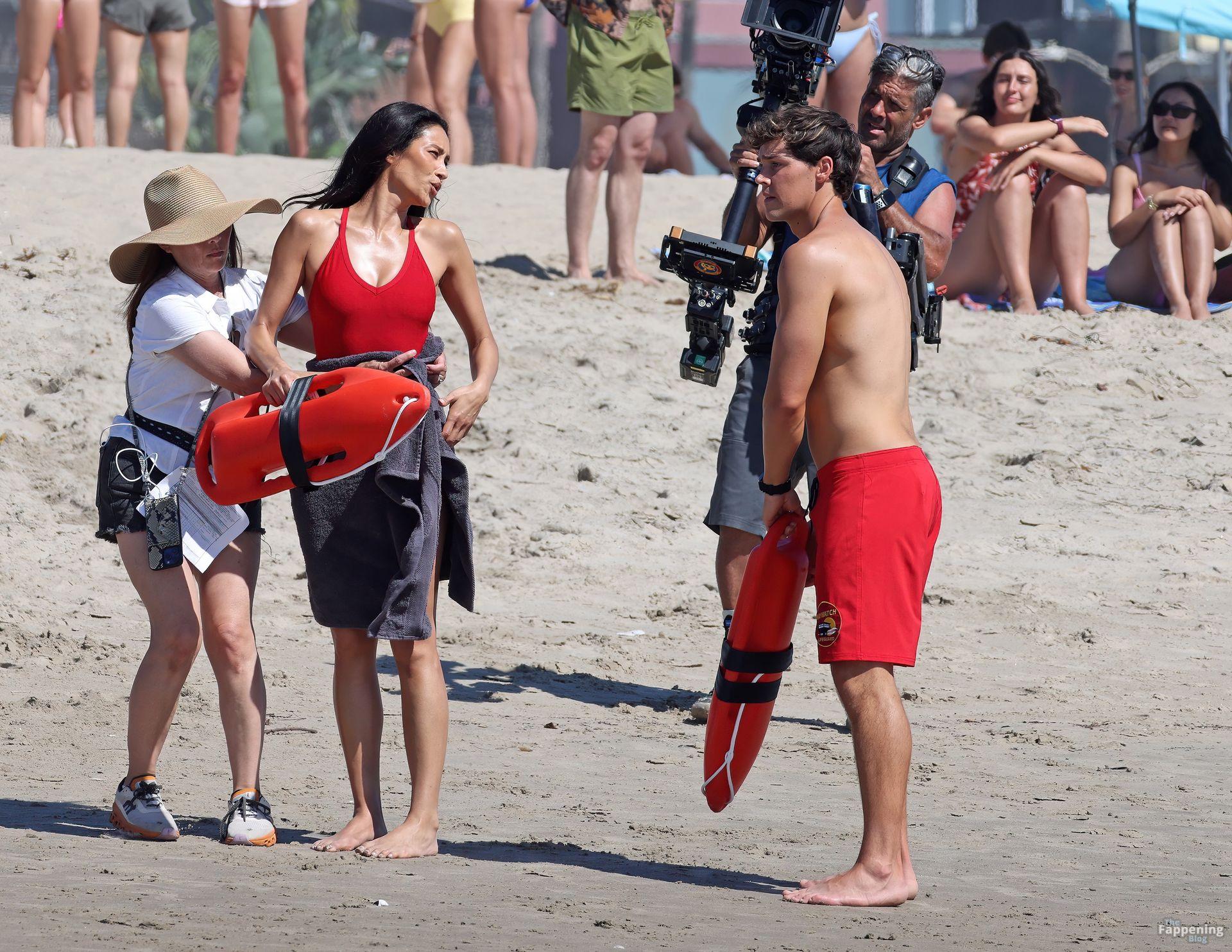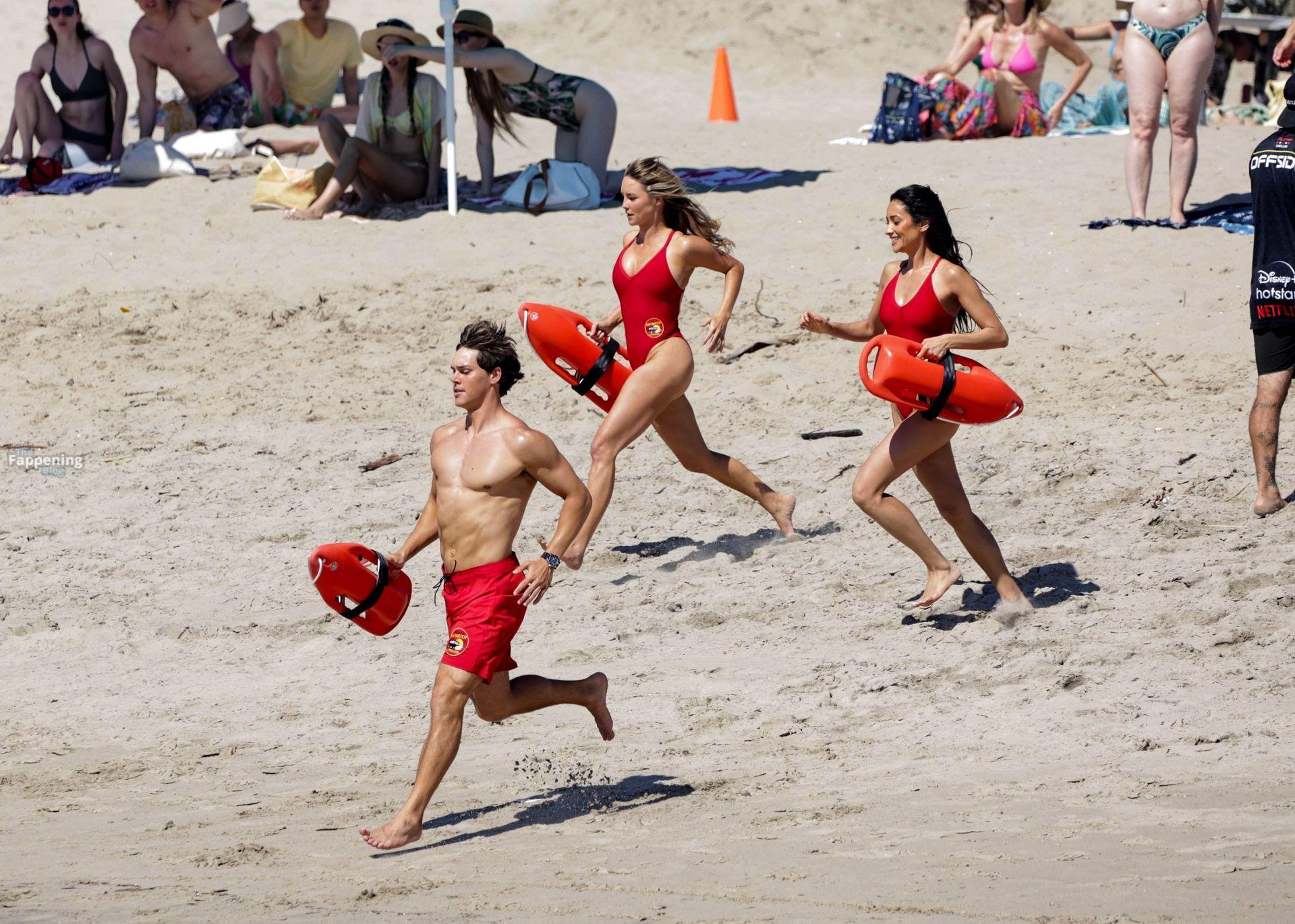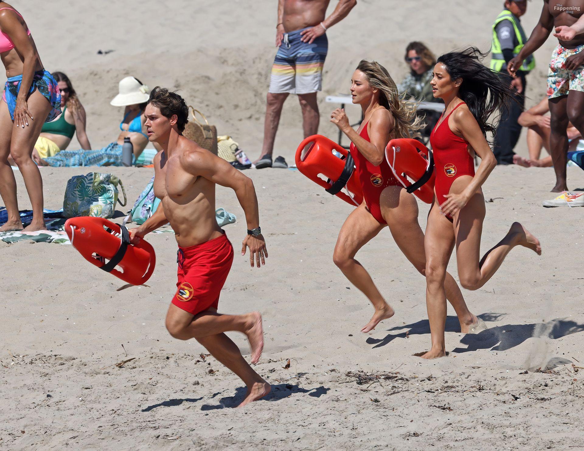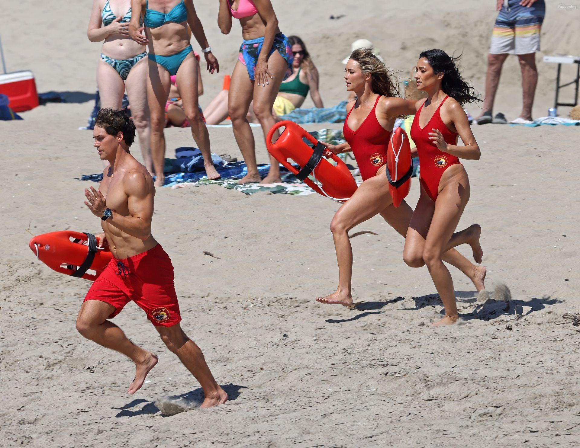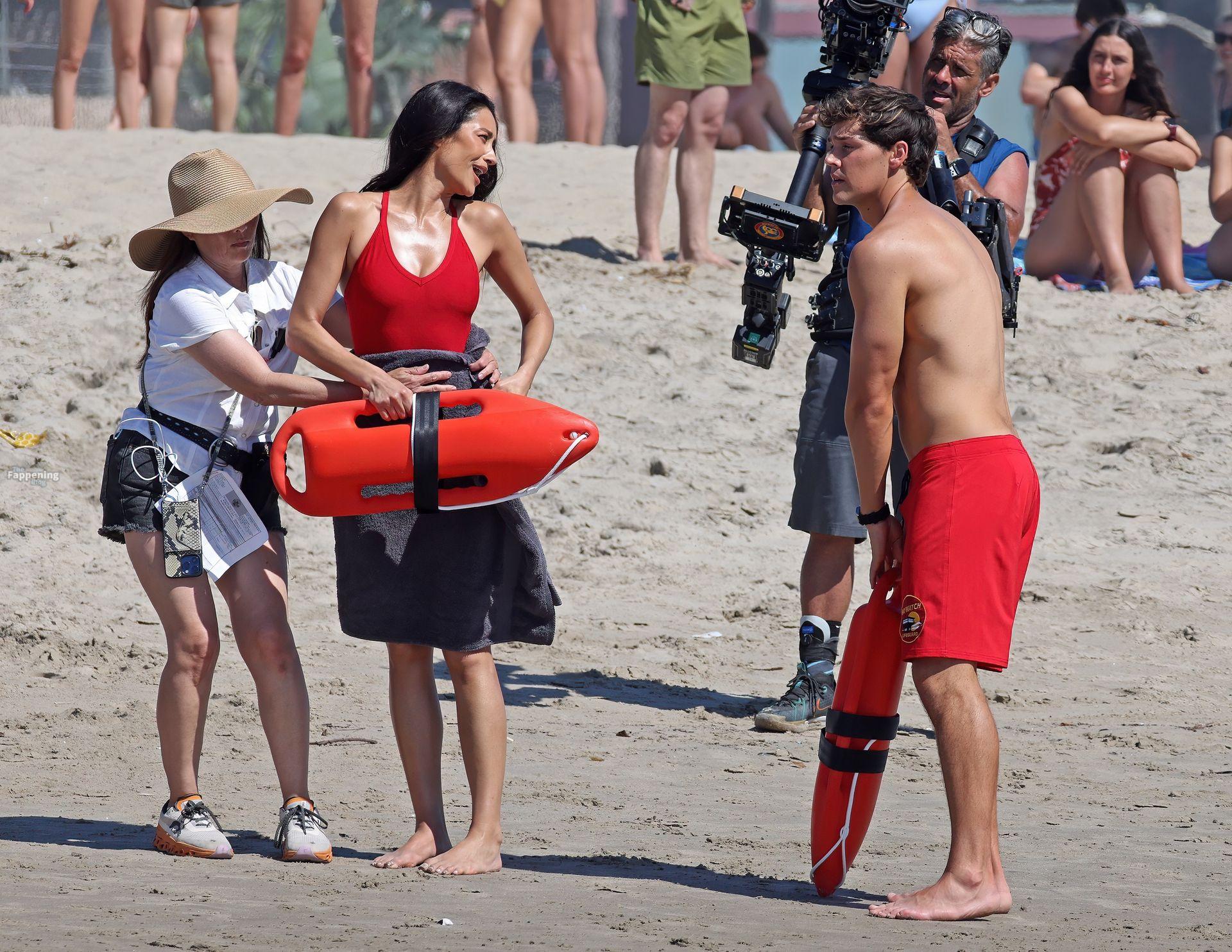 Shay Mitchell displayed her sexy beach-ready body while filming scenes this morning for Fox’s “Baywatch” Reboot.