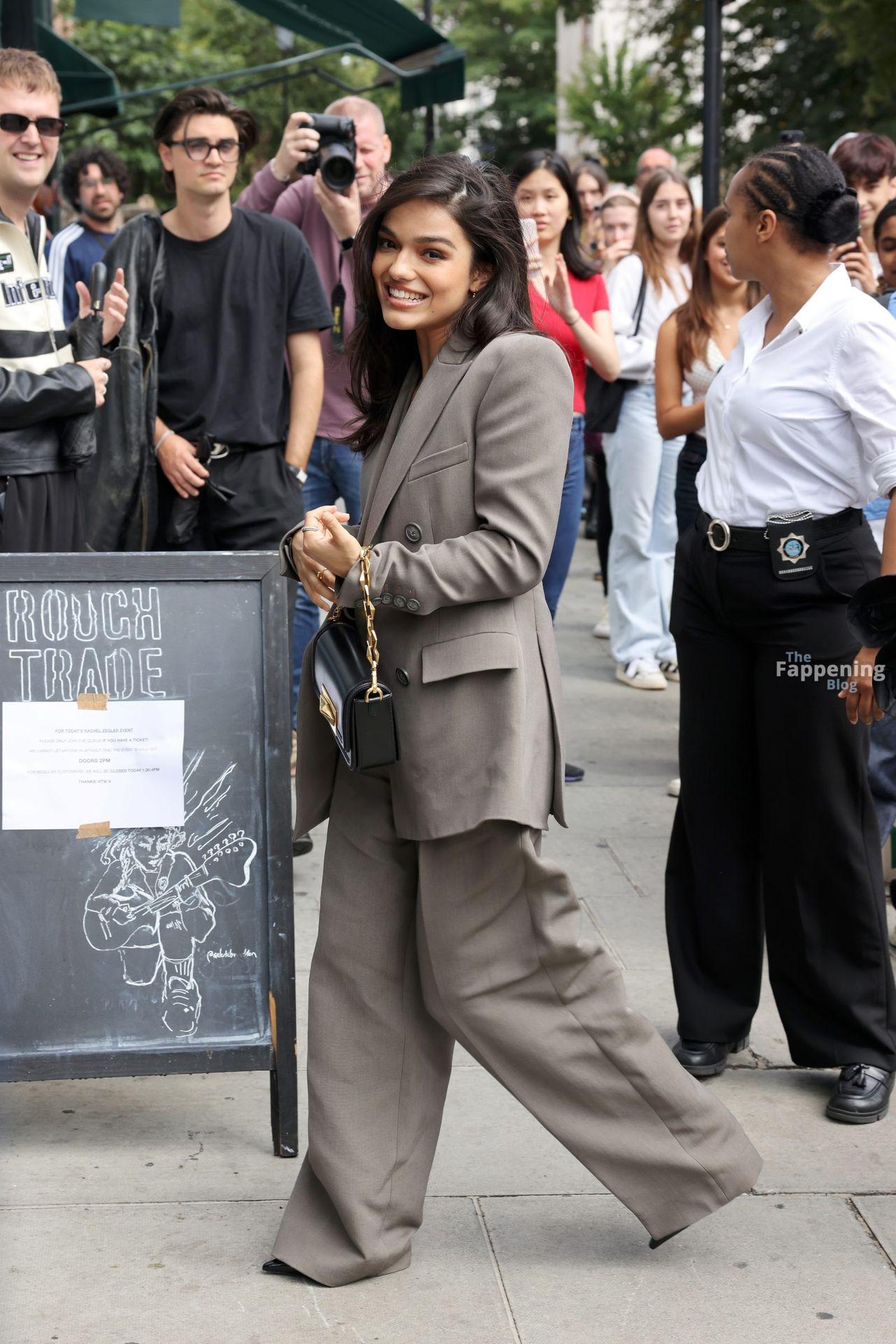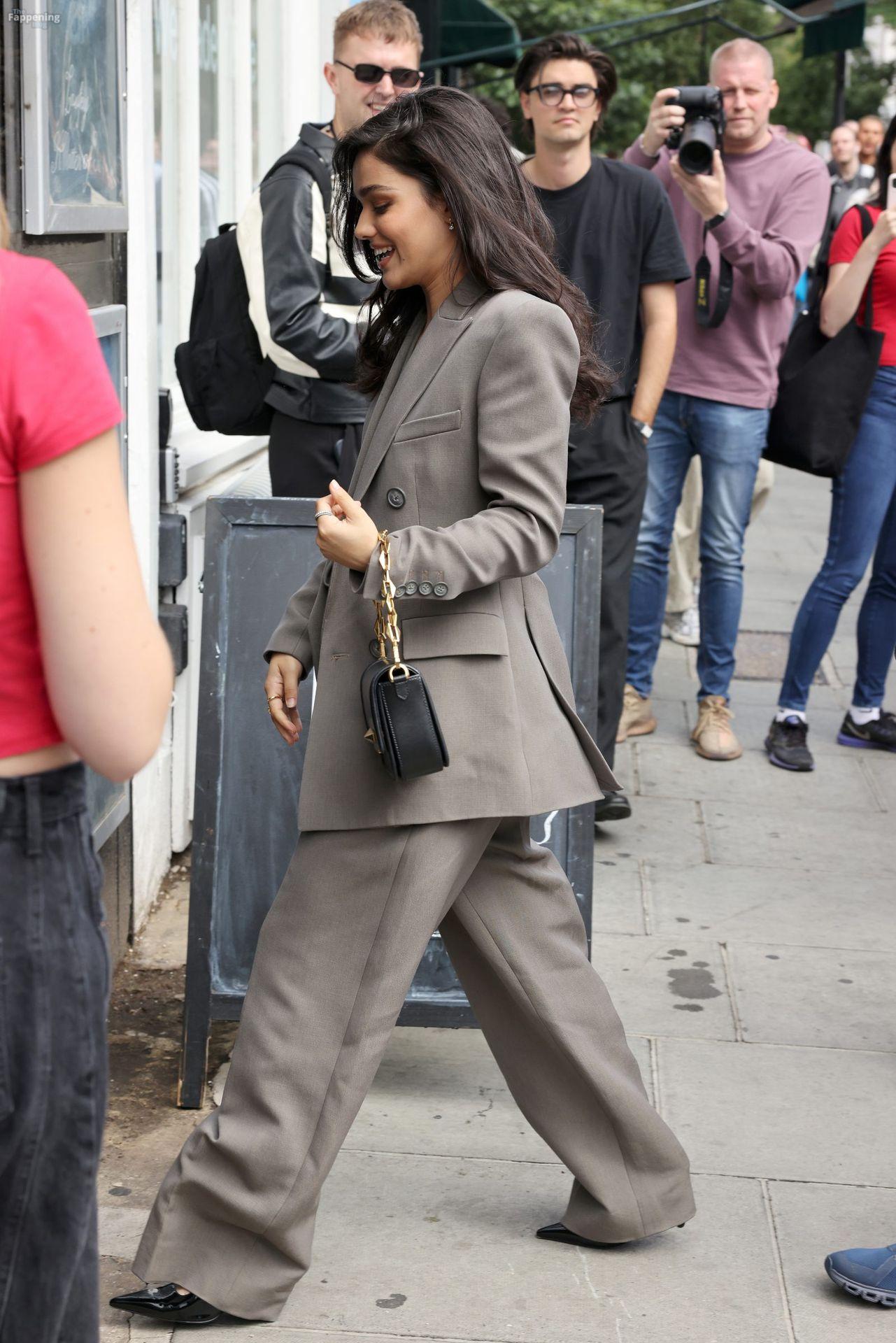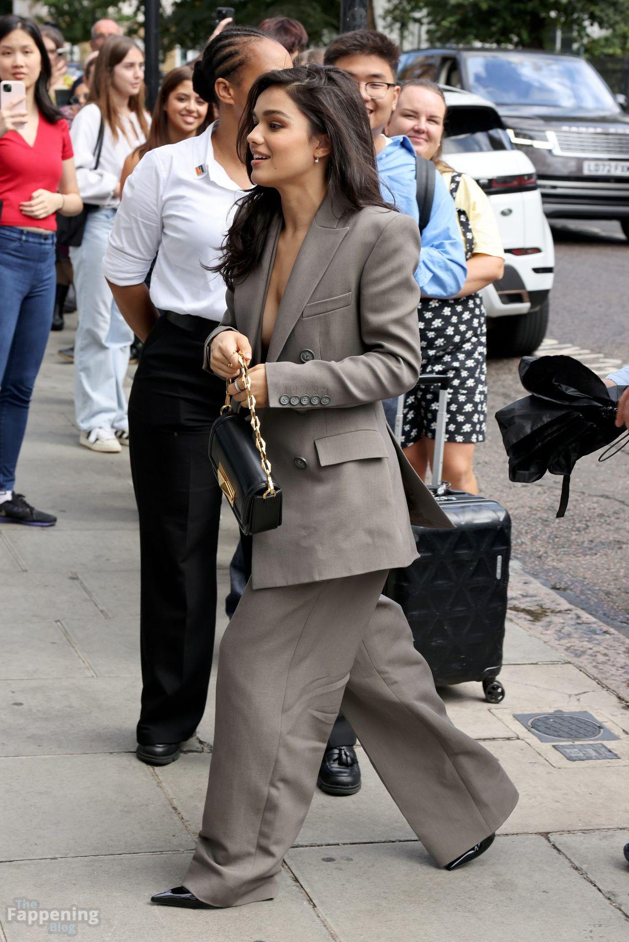 Rachel Zegler went braless in London, rockin’ a pantsuit that showed off cleavage and sideboob in a sexy look.
