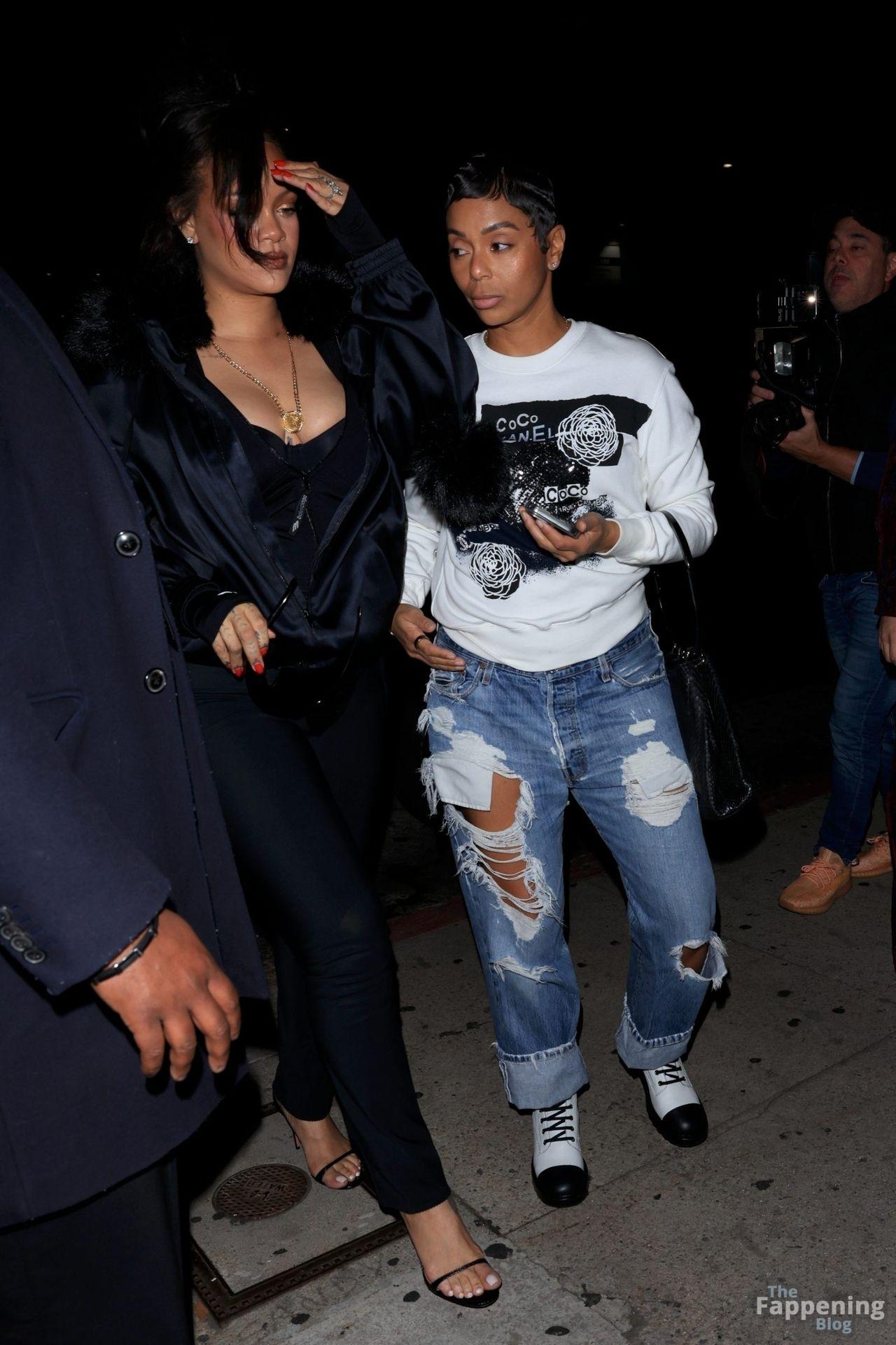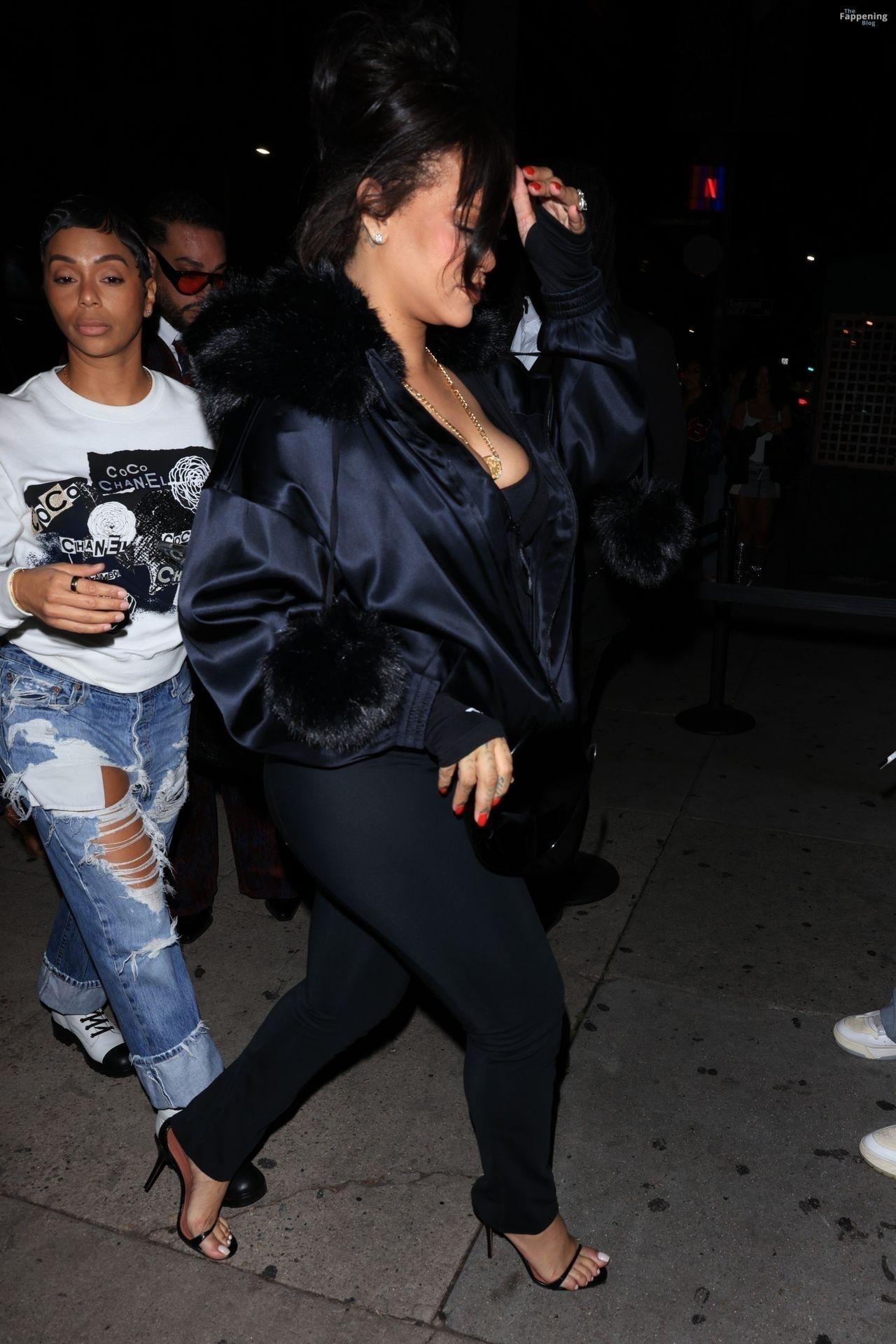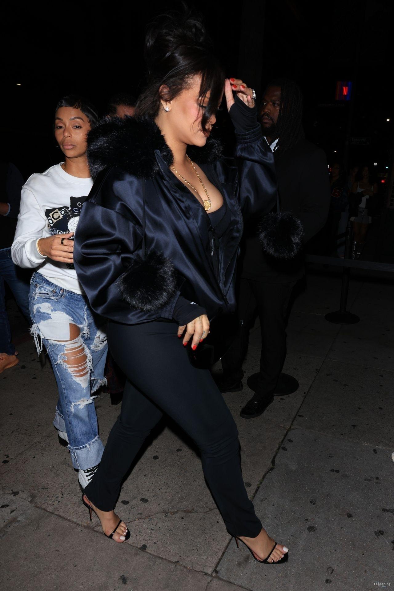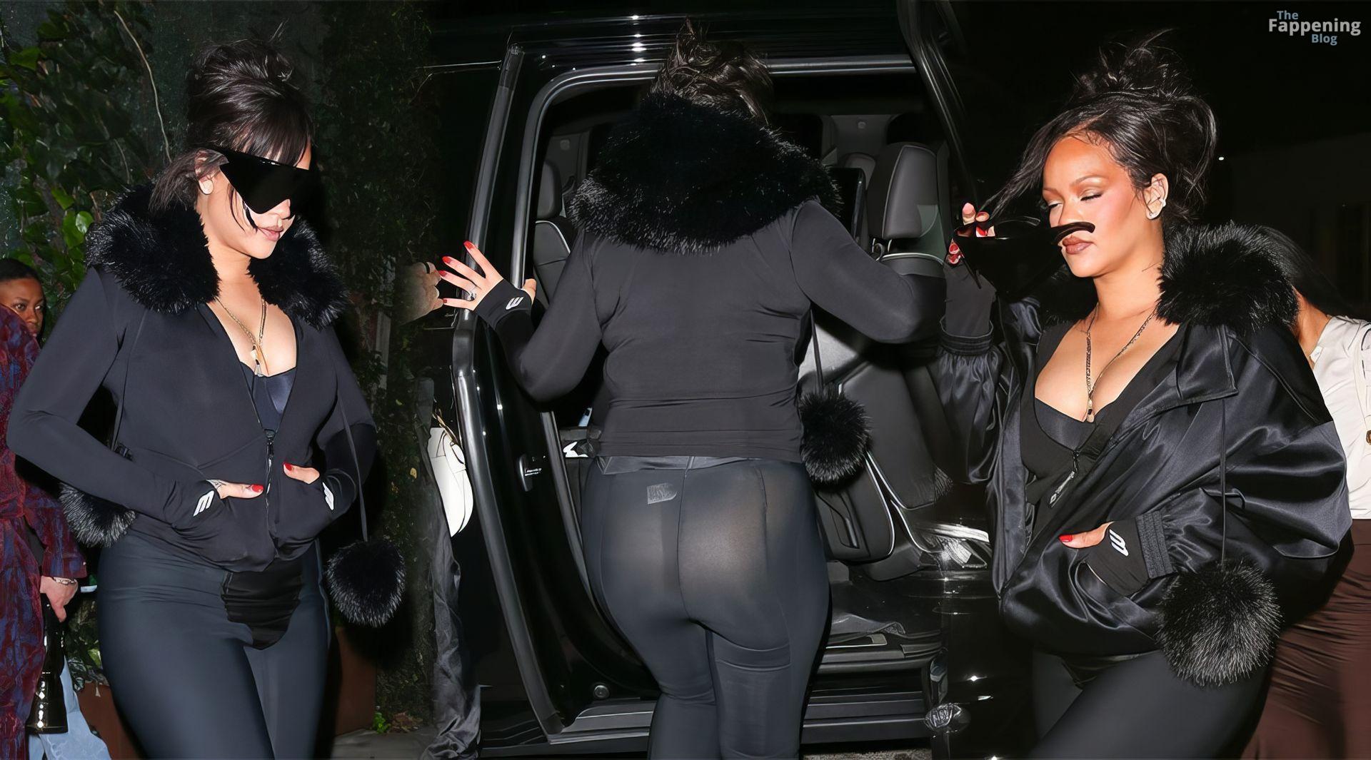 Rihanna displays her sexy booty and boobs, wearin’ see-through leggings, partyin’ late into the night at Dot Dot Lounge in Hollywood.