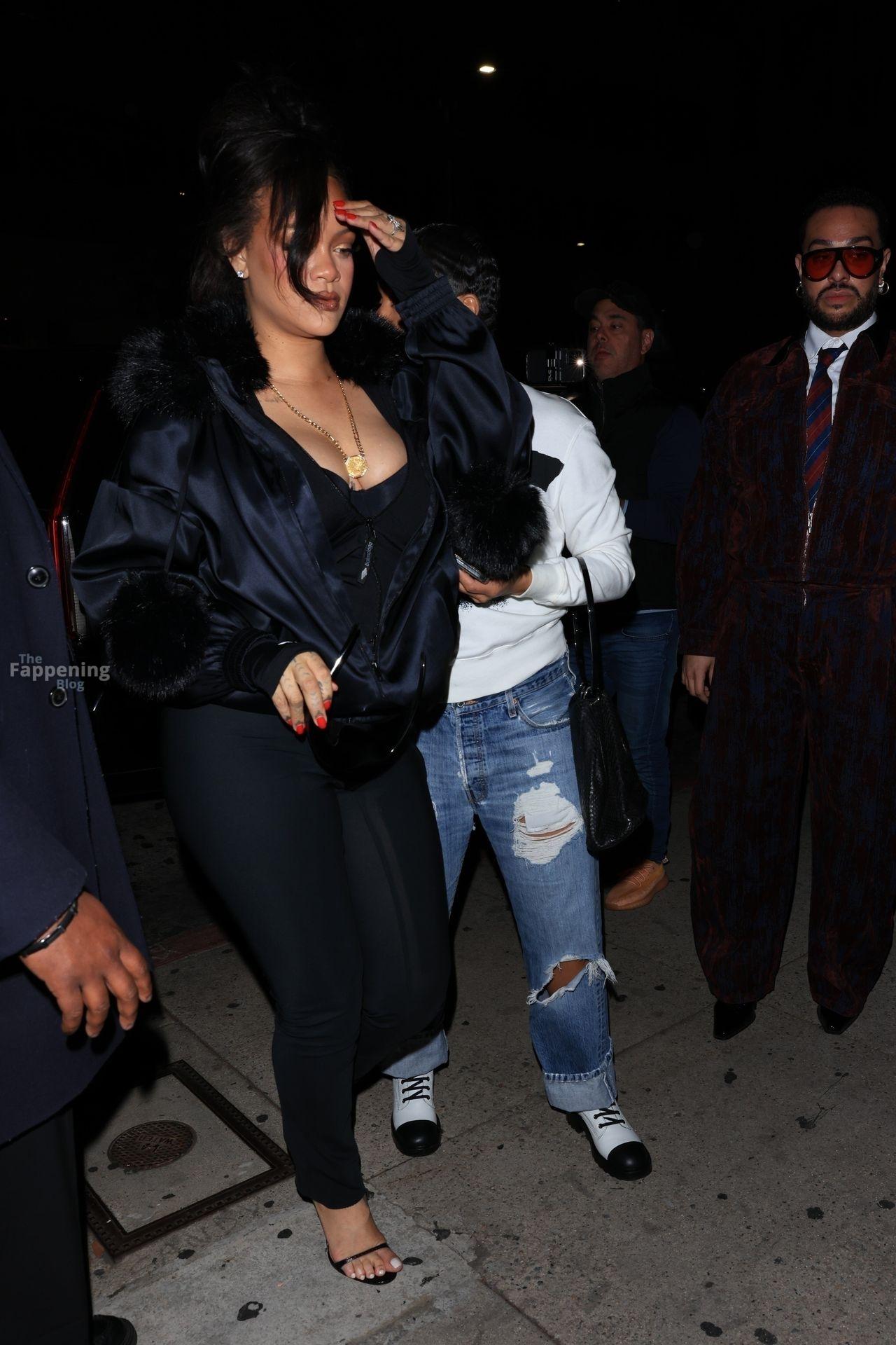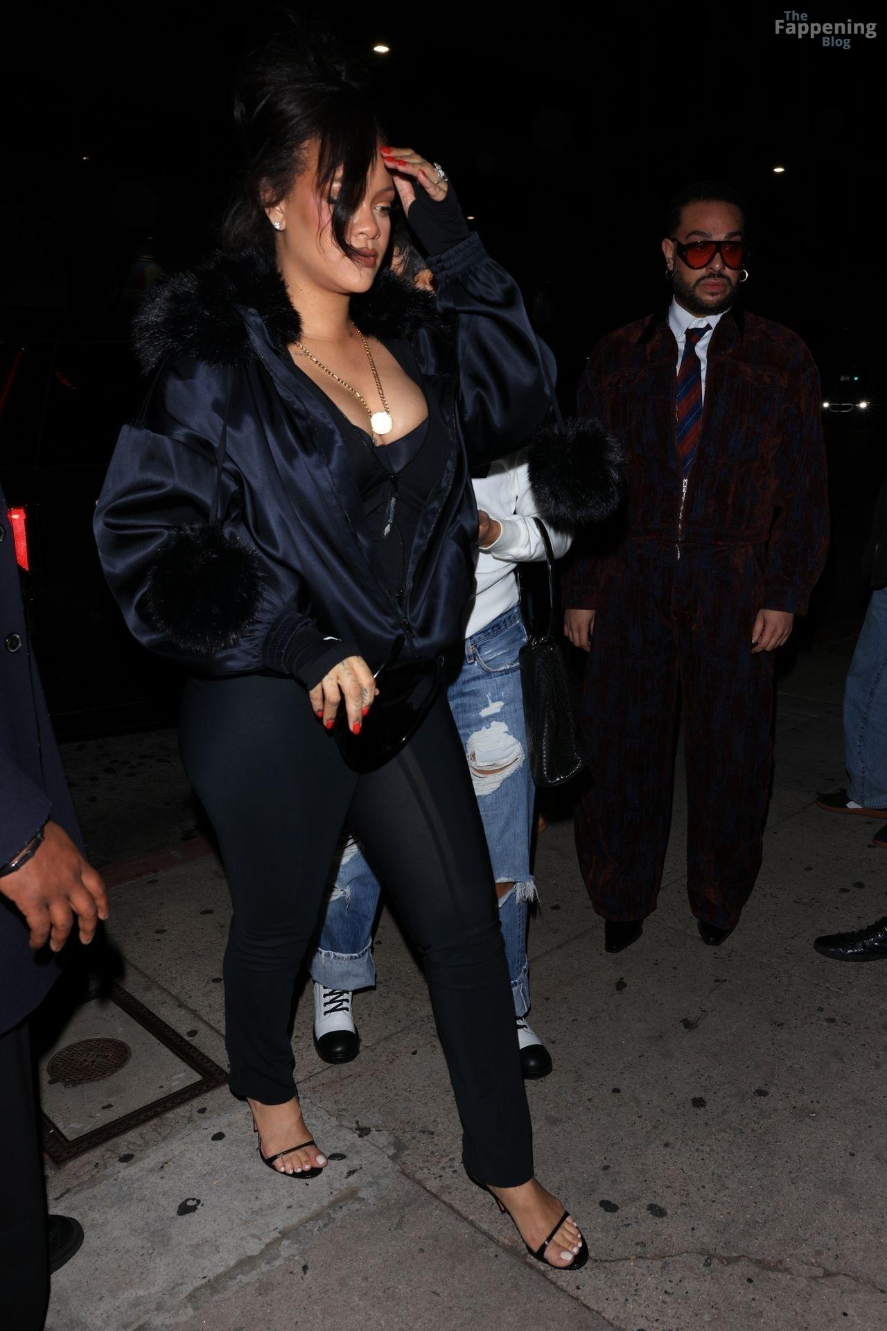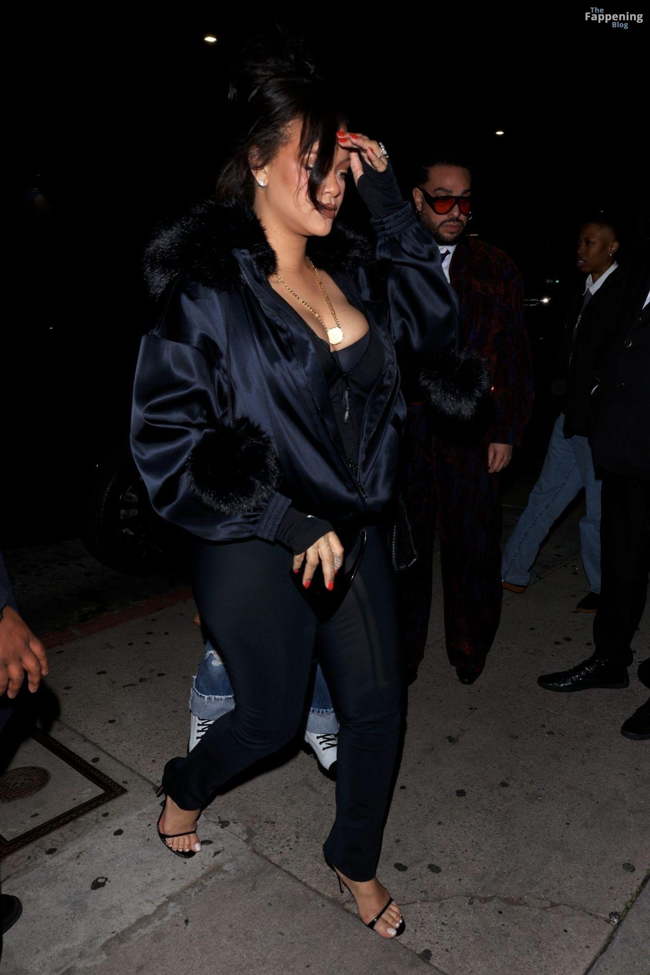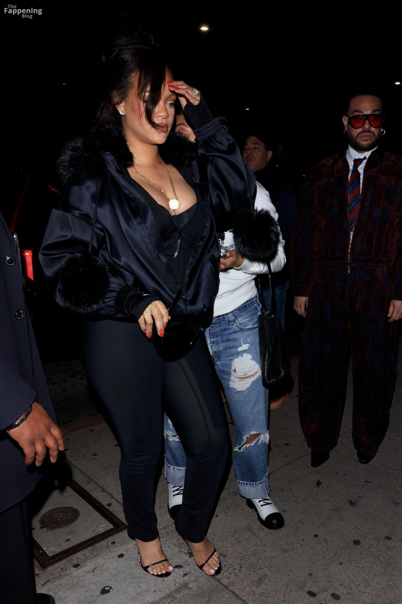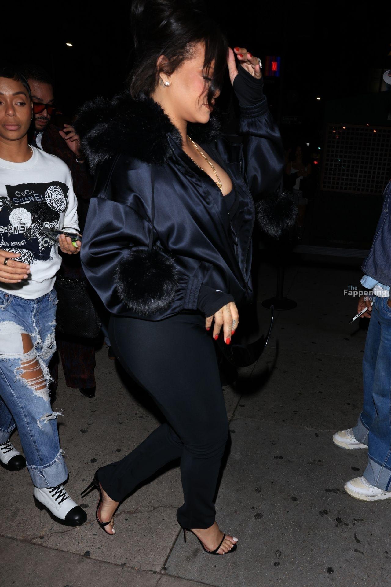 Rihanna displays her sexy booty and boobs, wearin’ see-through leggings, partyin’ late into the night at Dot Dot Lounge in Hollywood.
