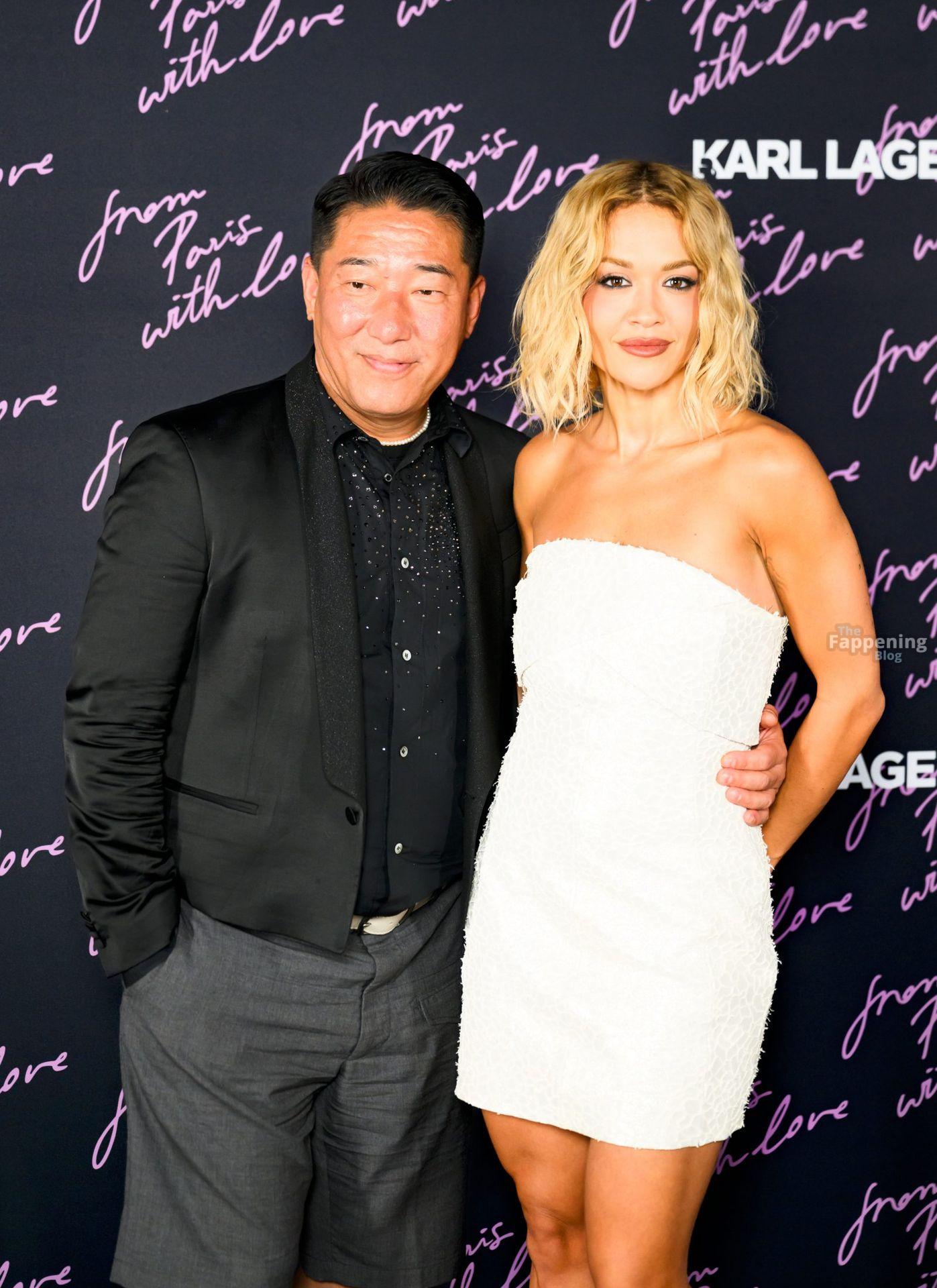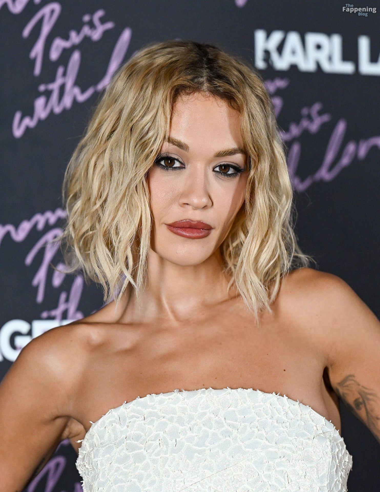 Rita Ora stunned at Karl Lagerfeld’s party in Paris in a strapless white mini dress. She showed off her toned legs and some ski.