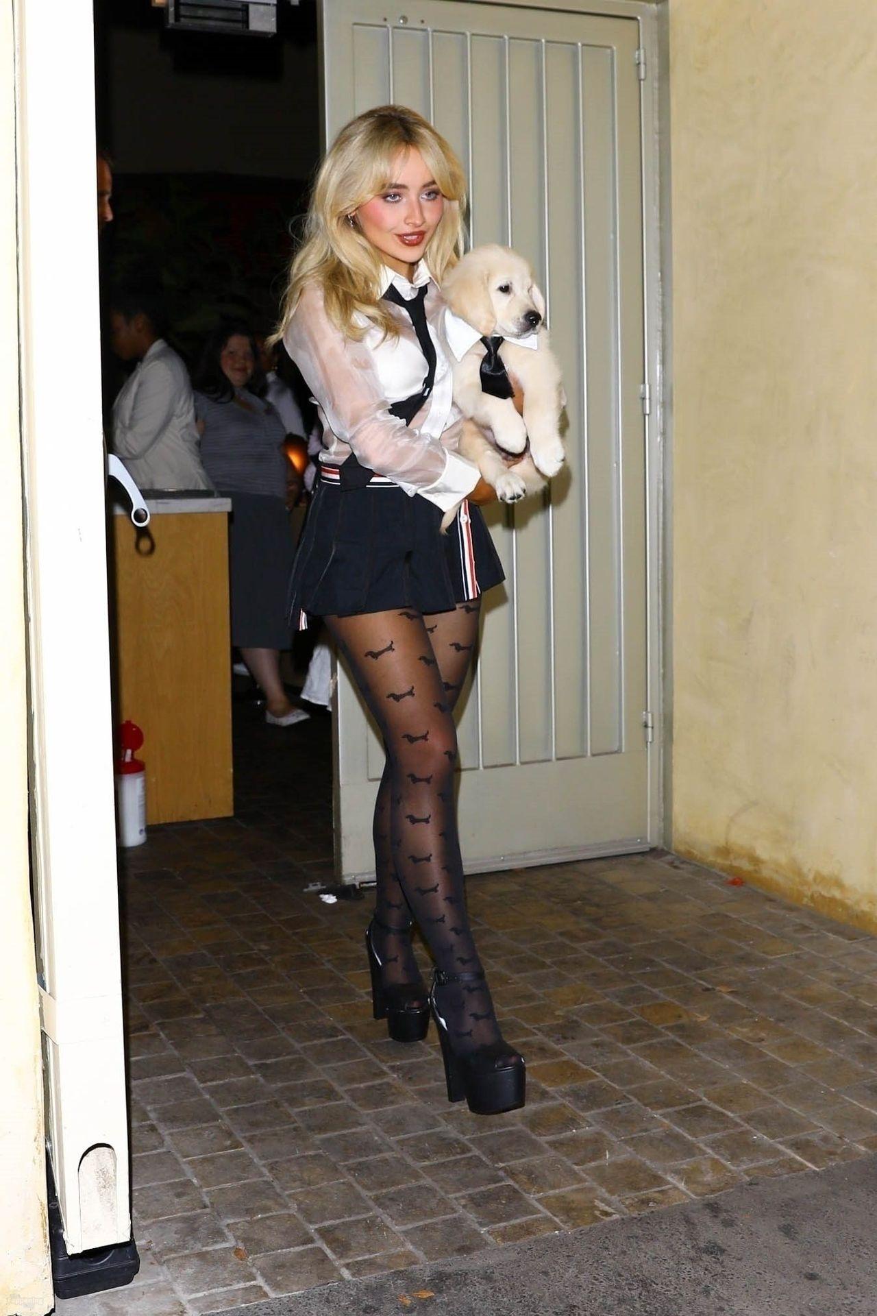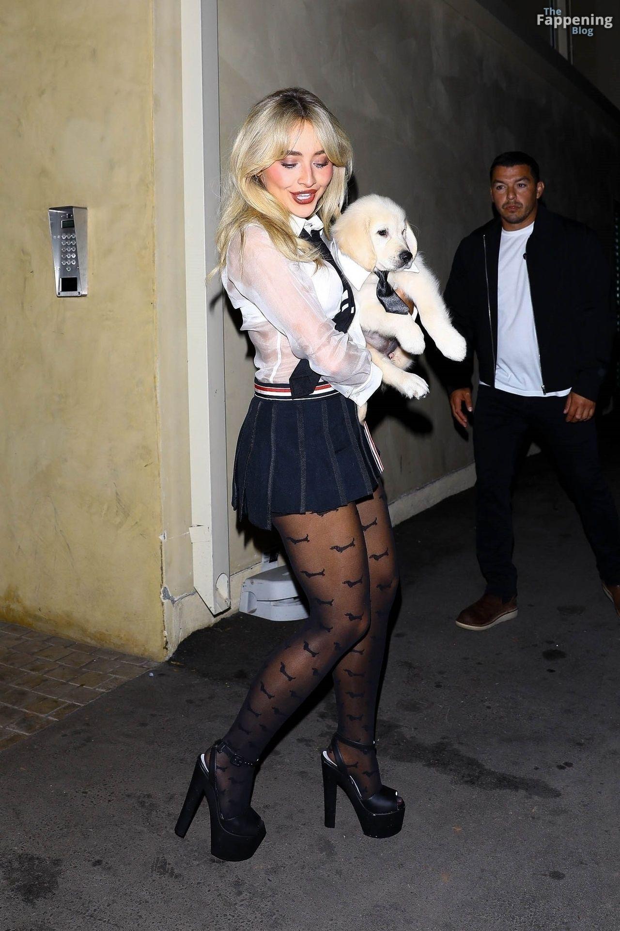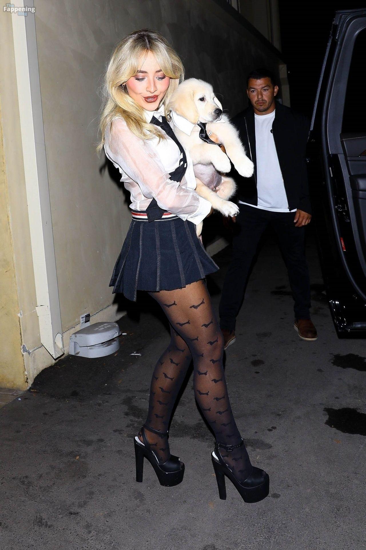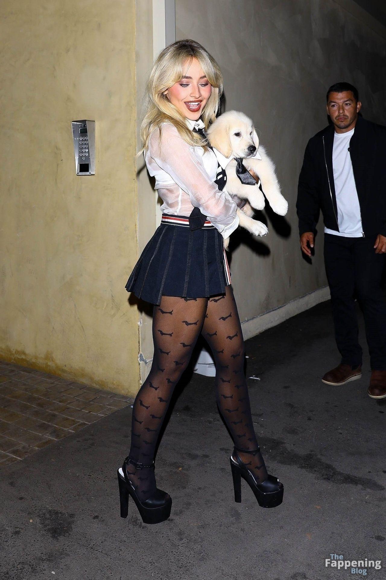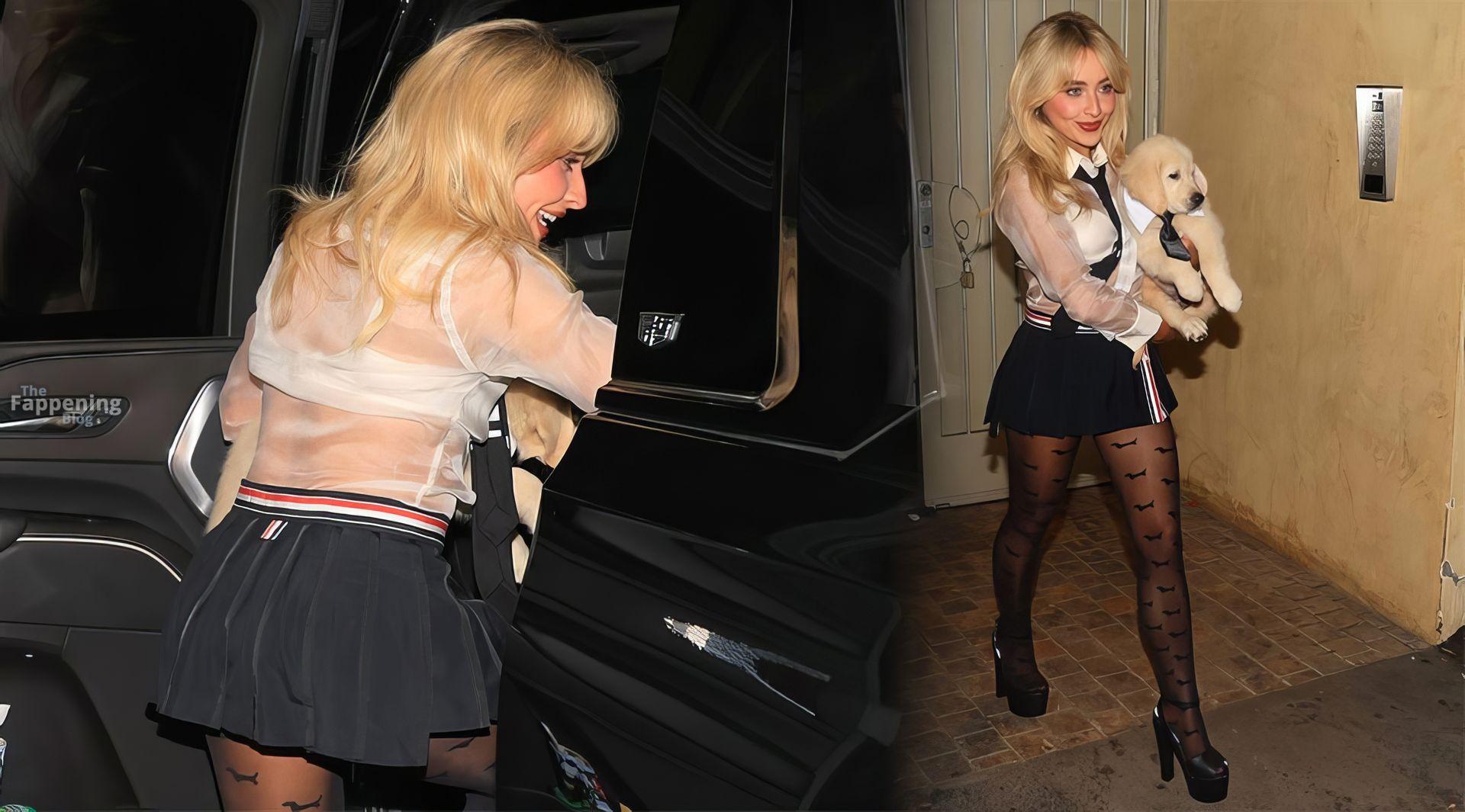 Check out Sabrina Carpenter in LA with a sheer blouse and mini skirt, flauntin’ her legs and cheeks at Alba’s album release.