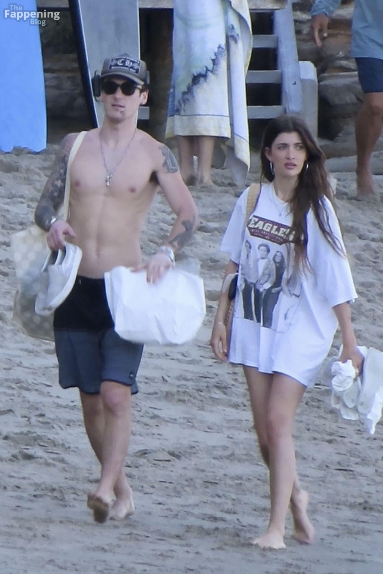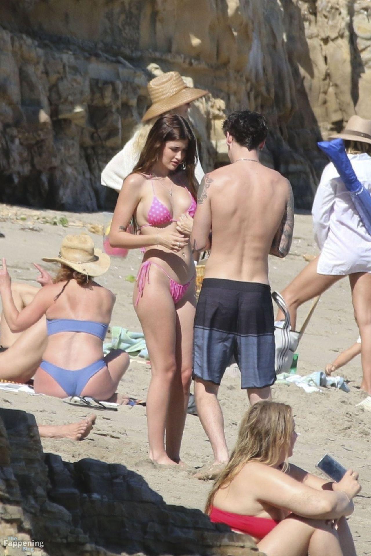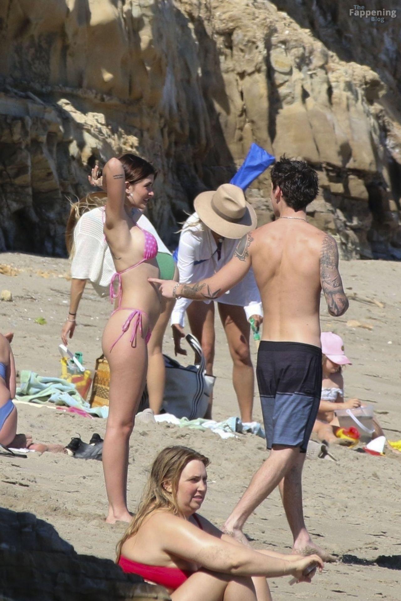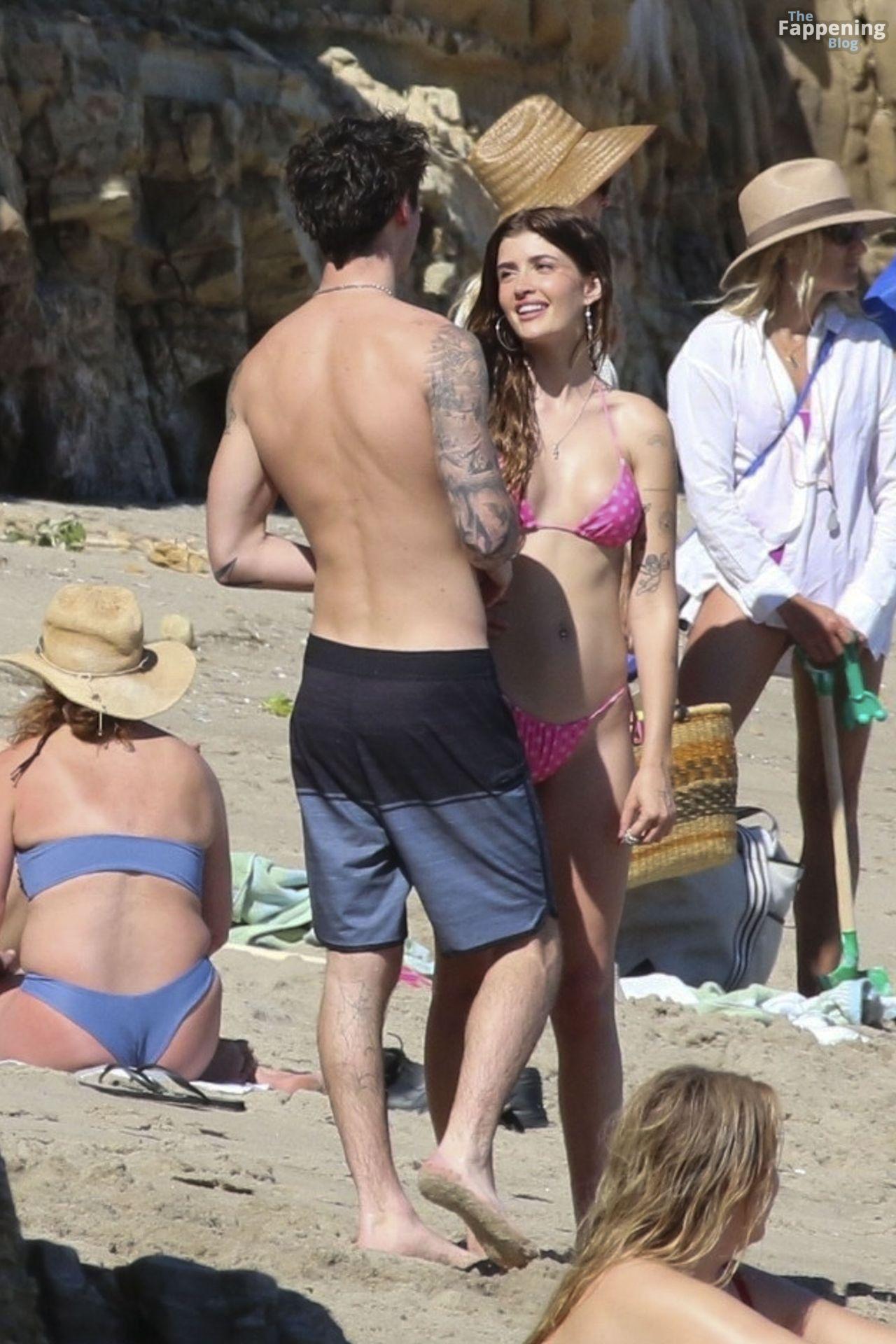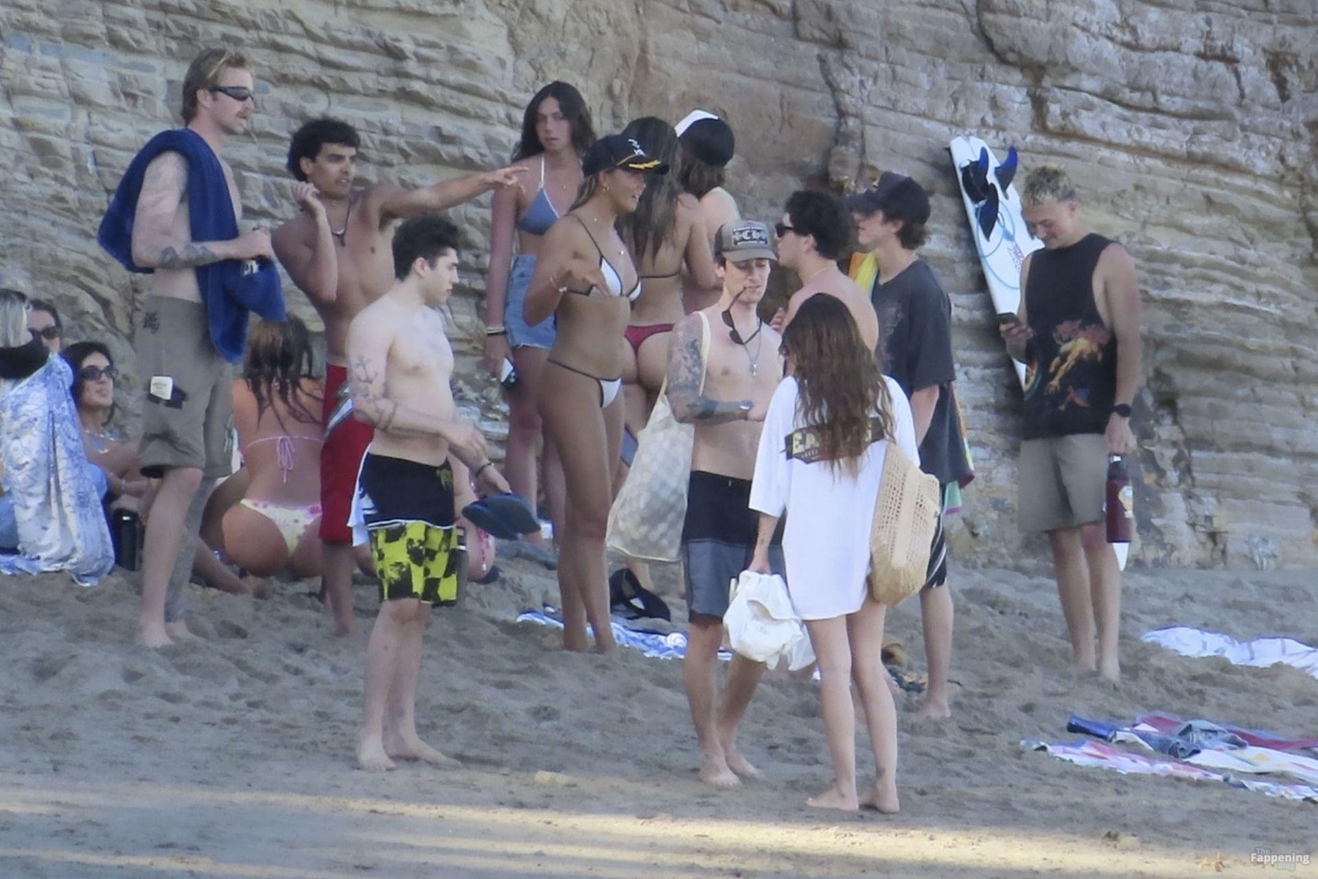 Model Sami Sheen is seen looking stunning in a pink thong bikini while picking up shells and enjoying a sunny day on the beach with believed to be boyfriend and friends in Malibu, California.