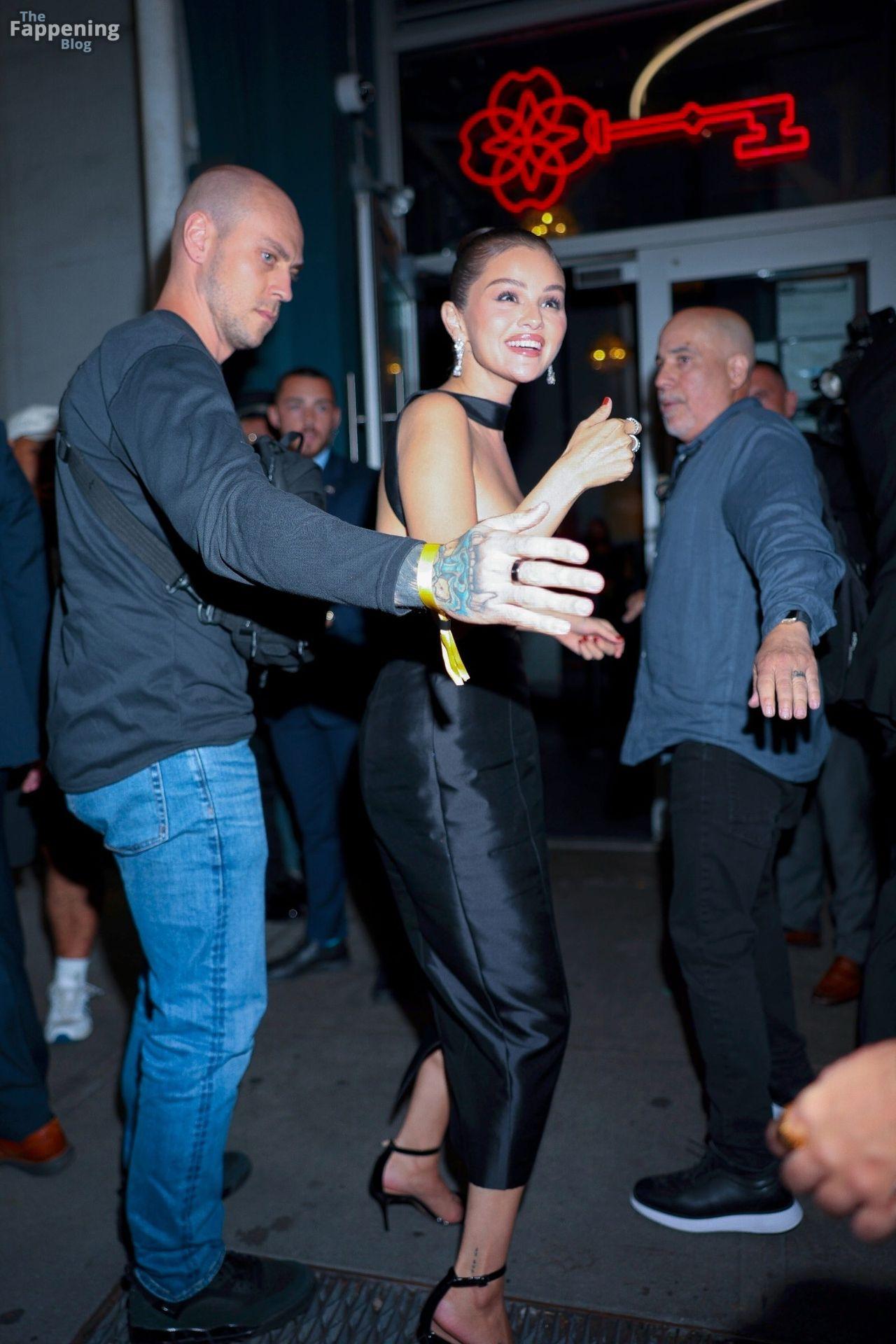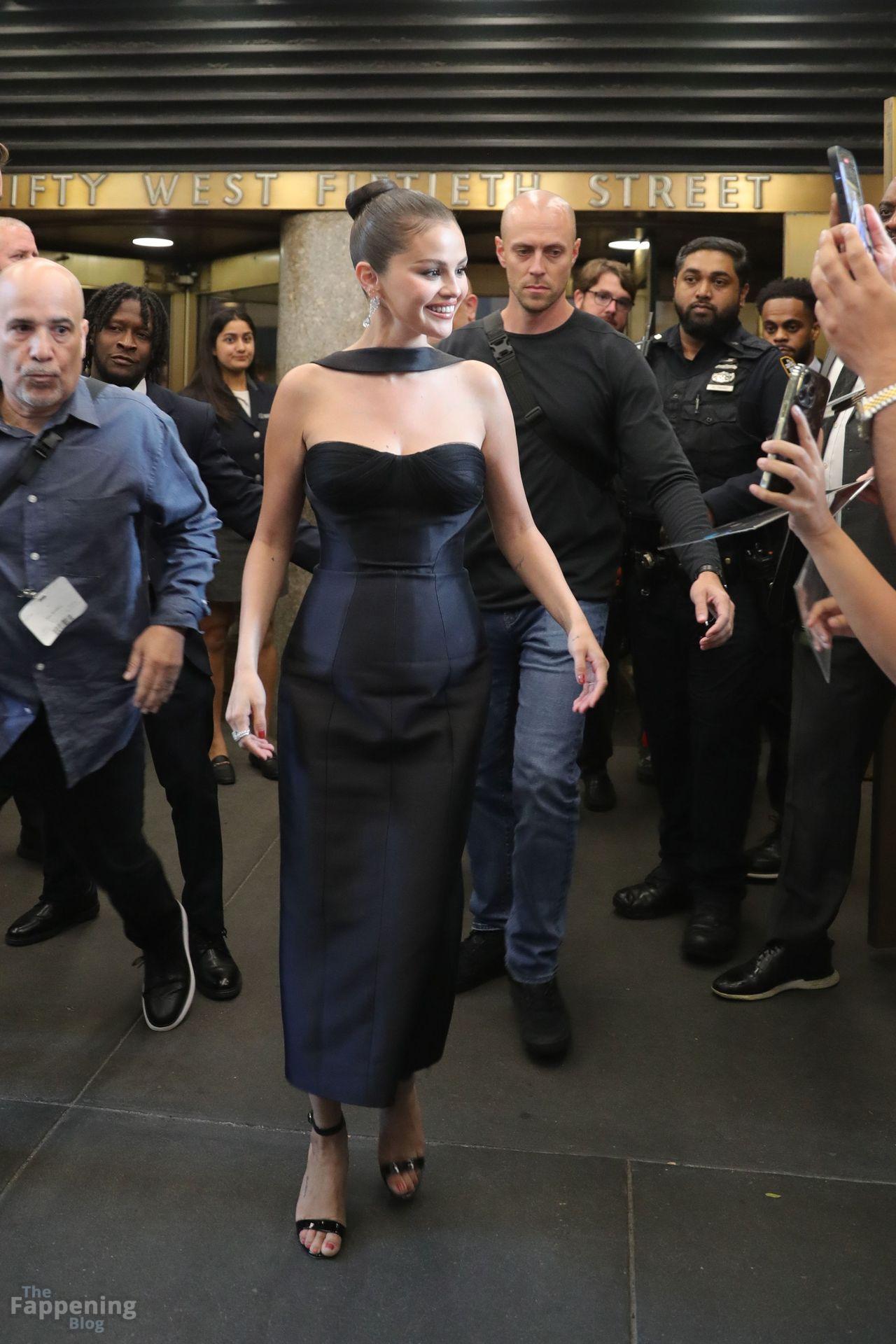Selena Gomez was showin’ major cleavage in a strapless black satin dress. The superstar singer and actress got swarmed by fans after The Tonight Show Starring Jimmy Fallon in New York.