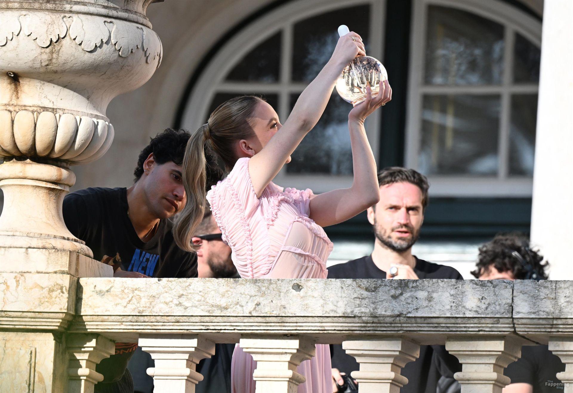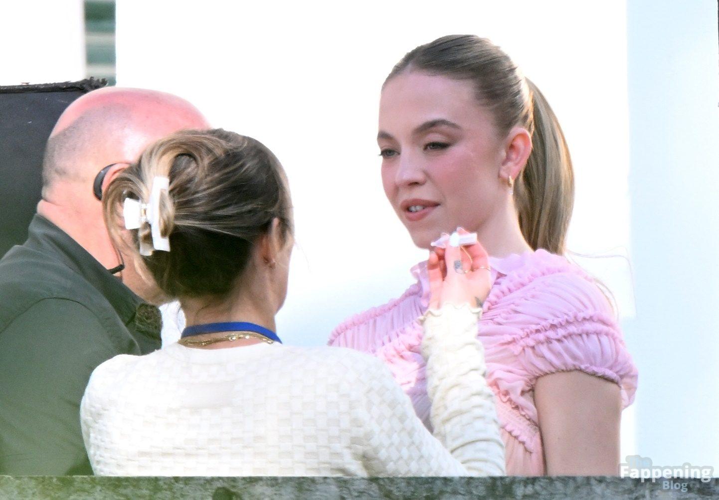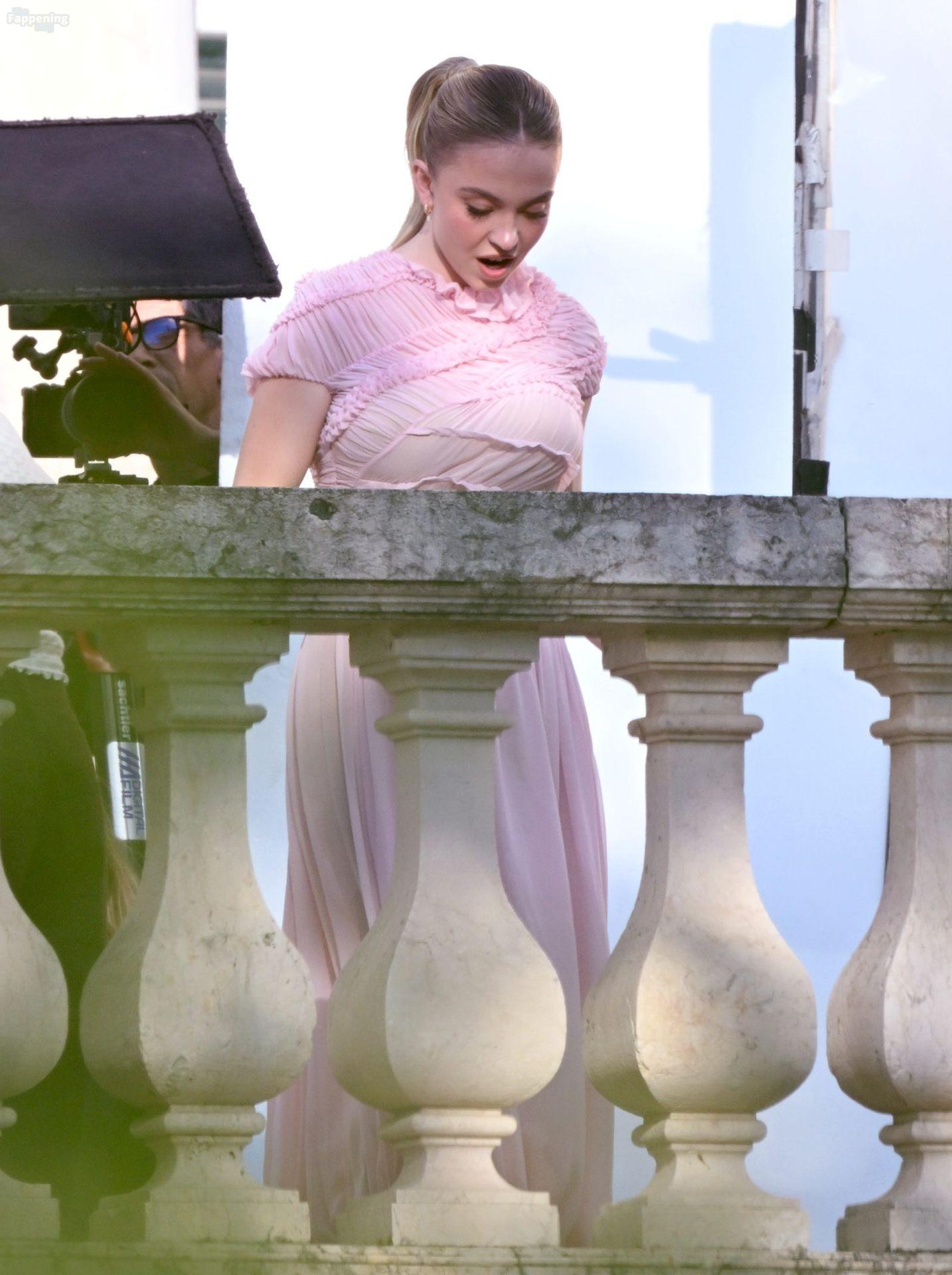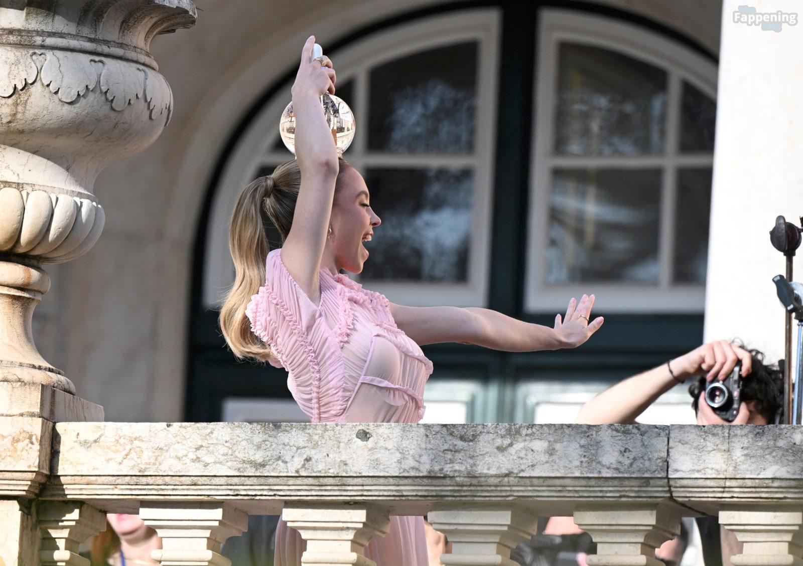 Sydney Sweeney is seen filming a campaign for haircare brand Kerastase in Lisbon, Portugal.