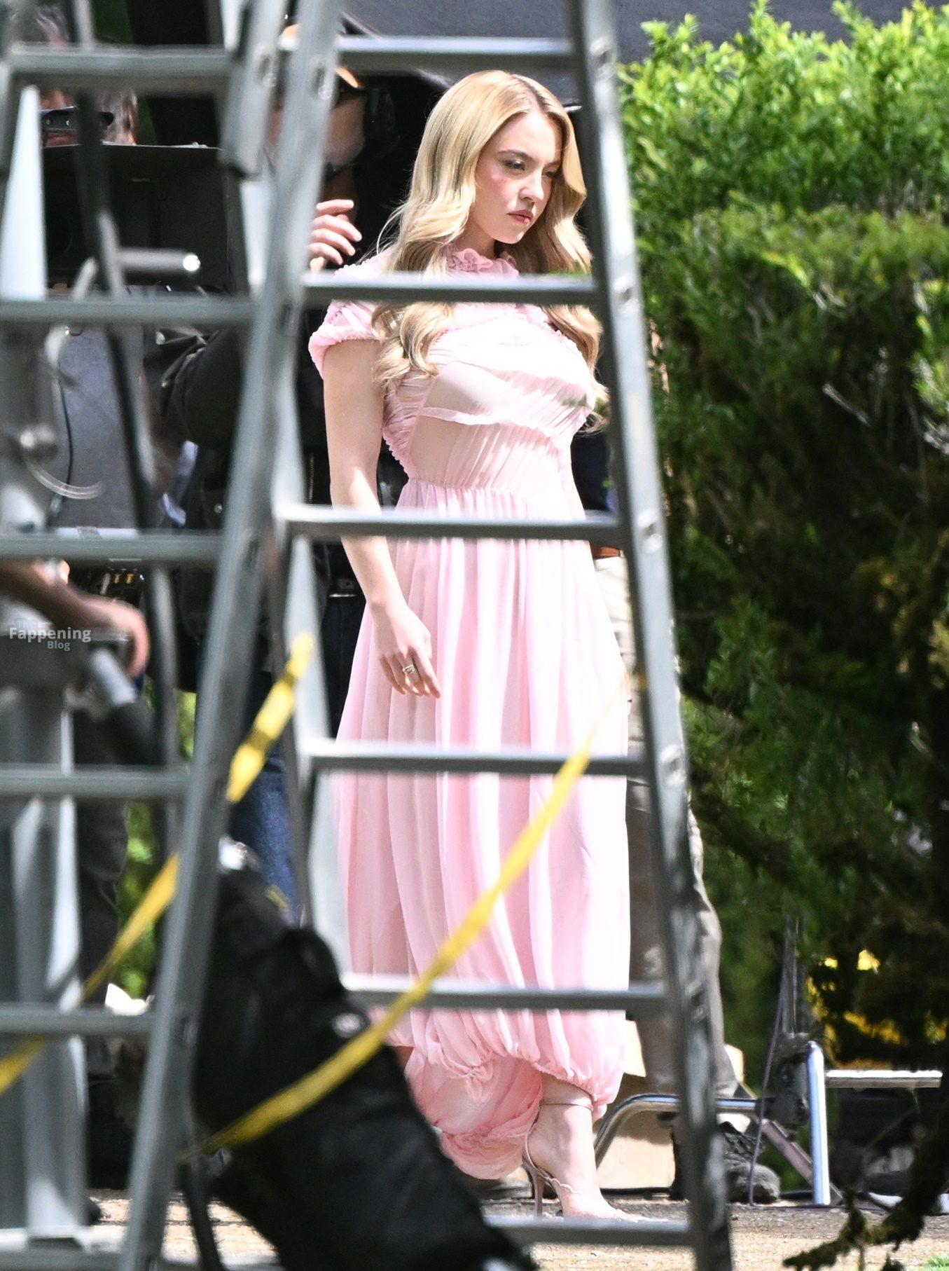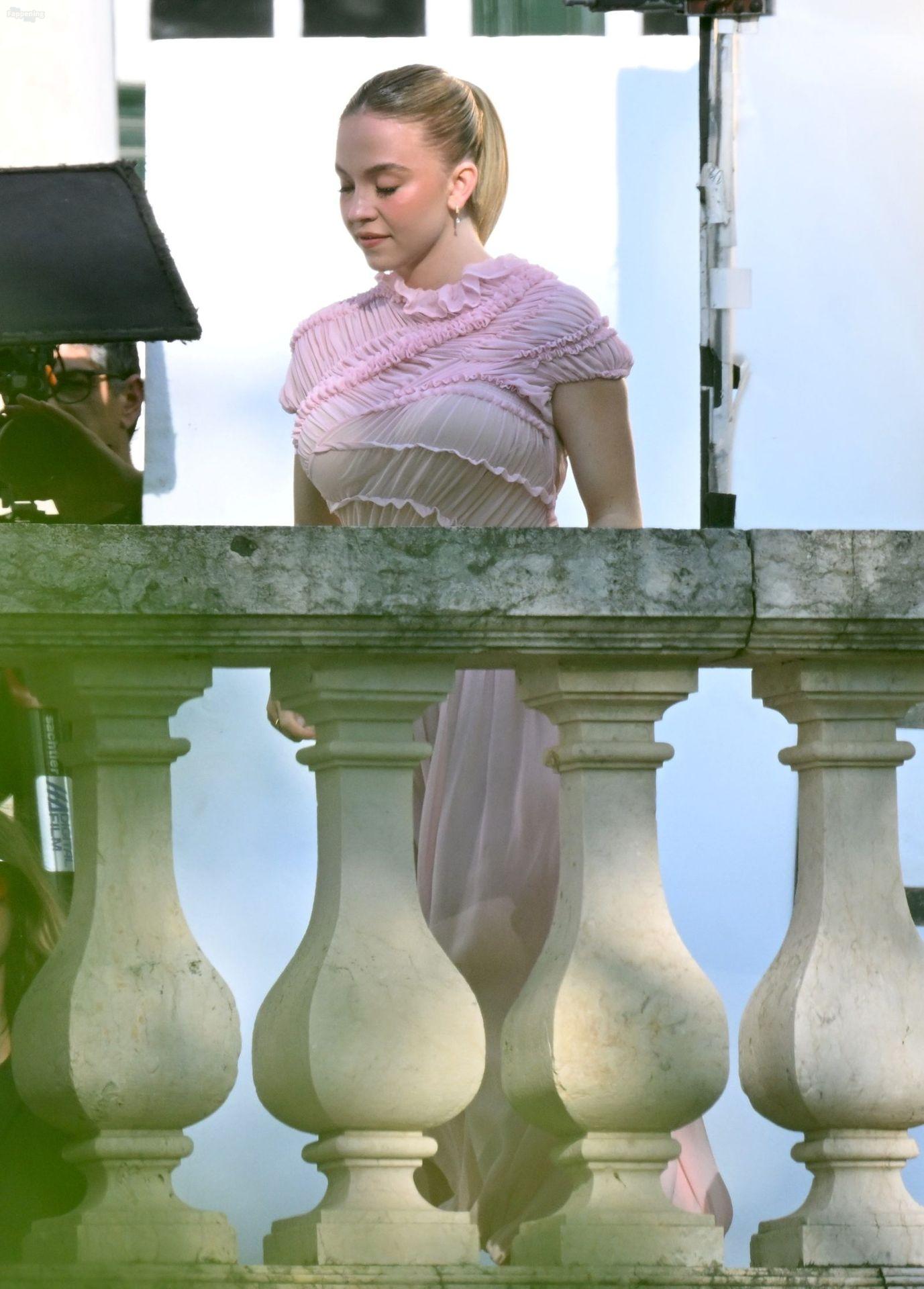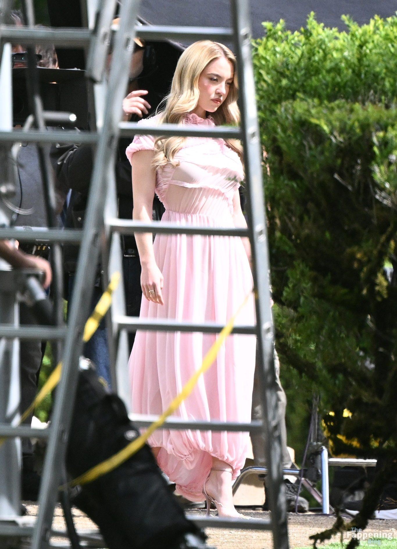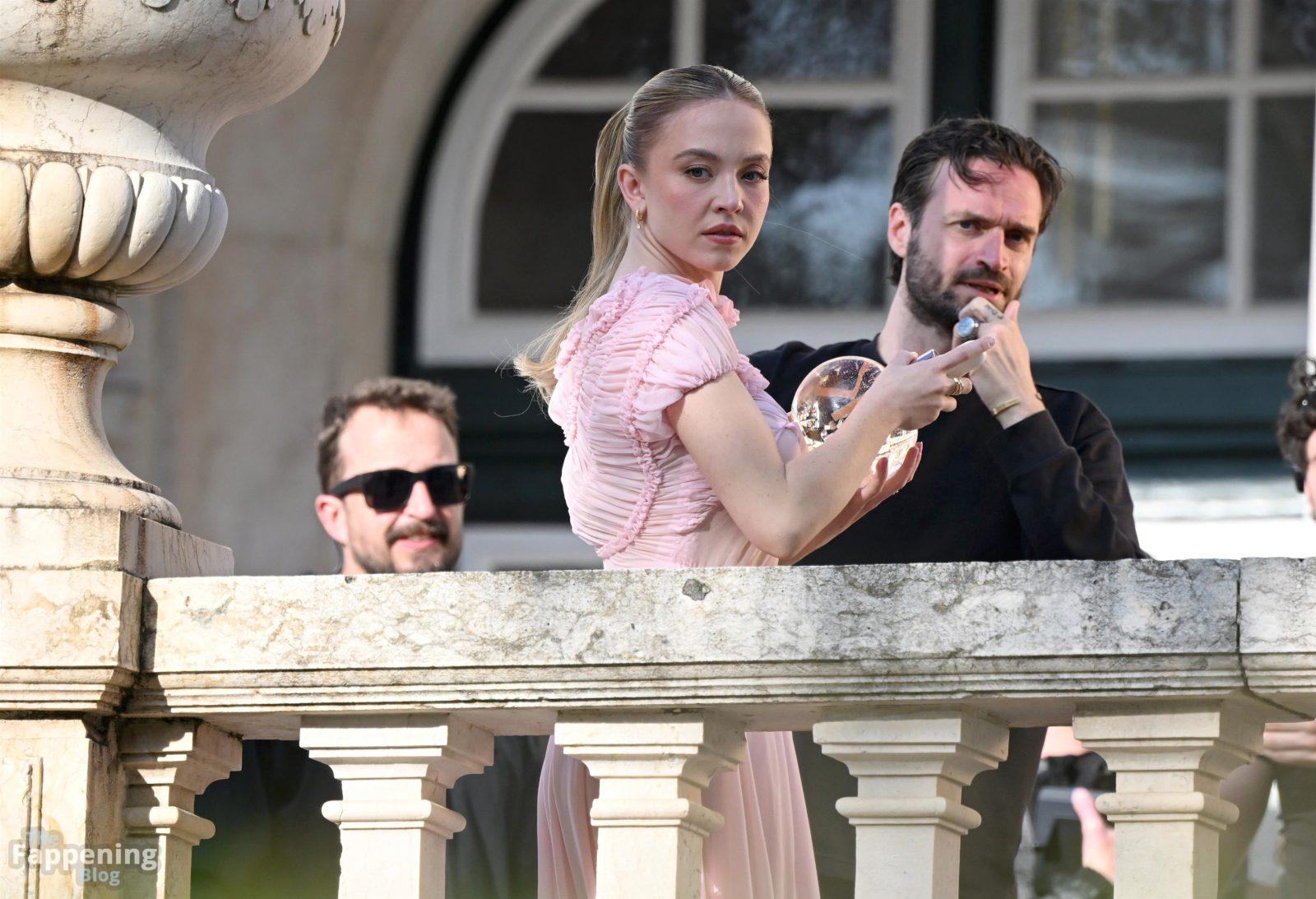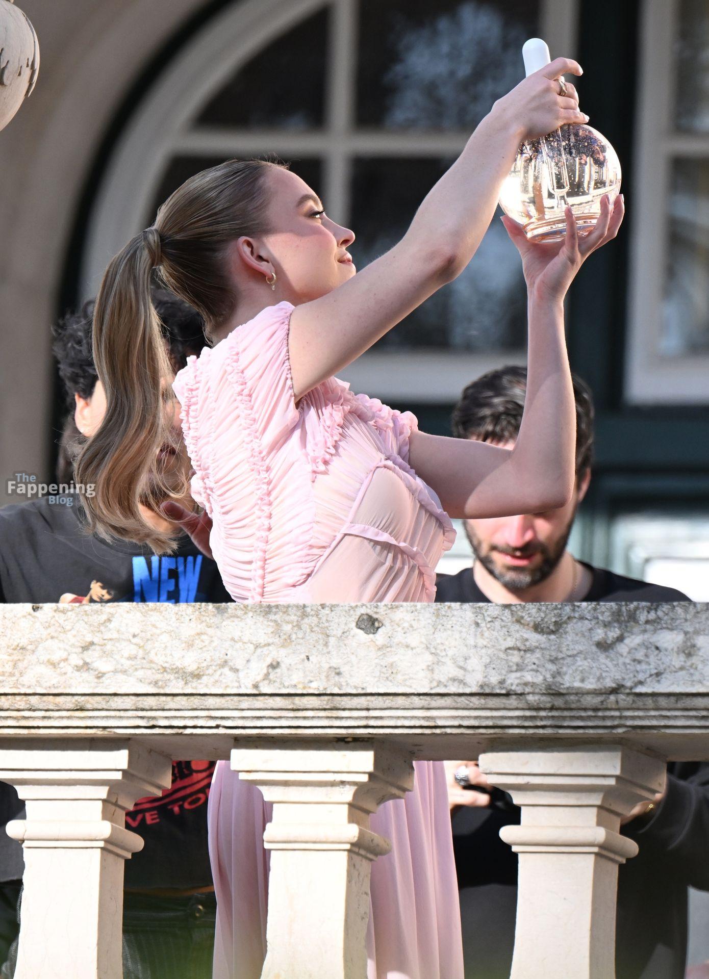 Sydney Sweeney is seen filming a campaign for haircare brand Kerastase in Lisbon, Portugal.