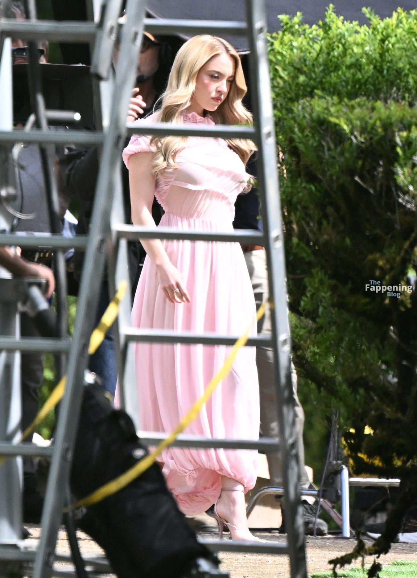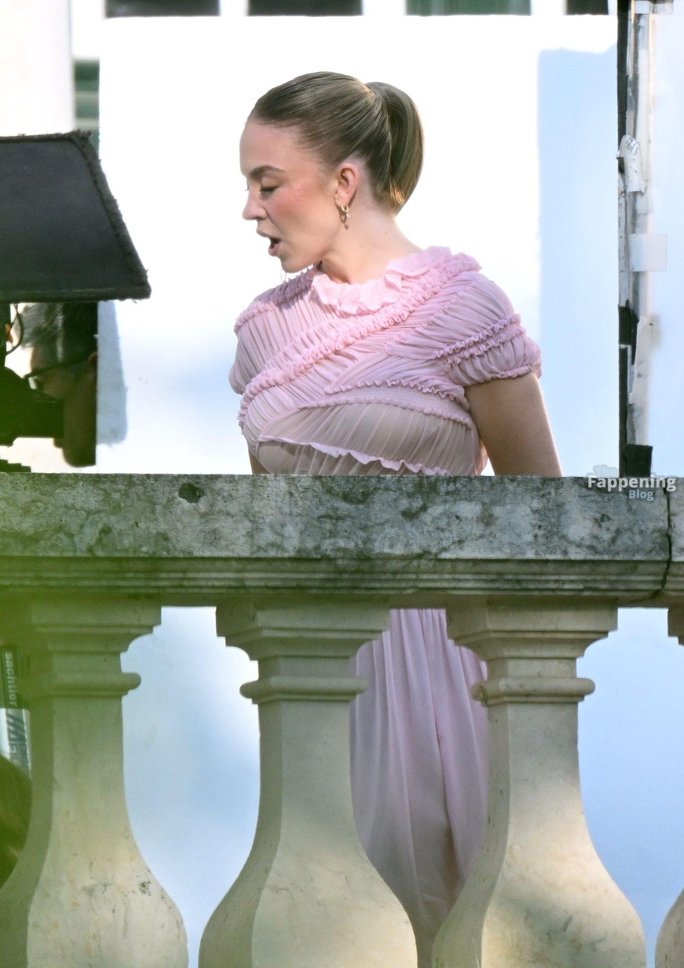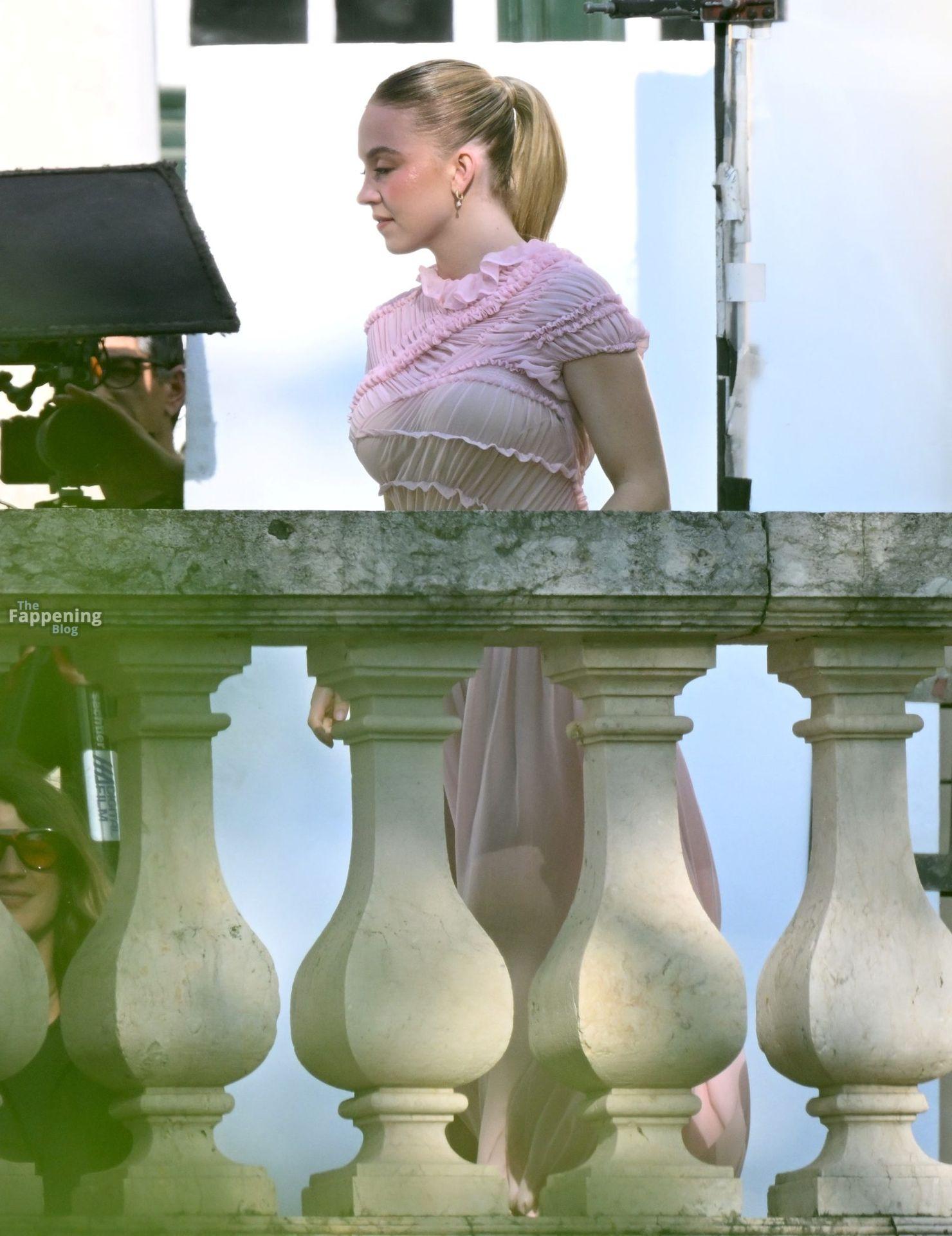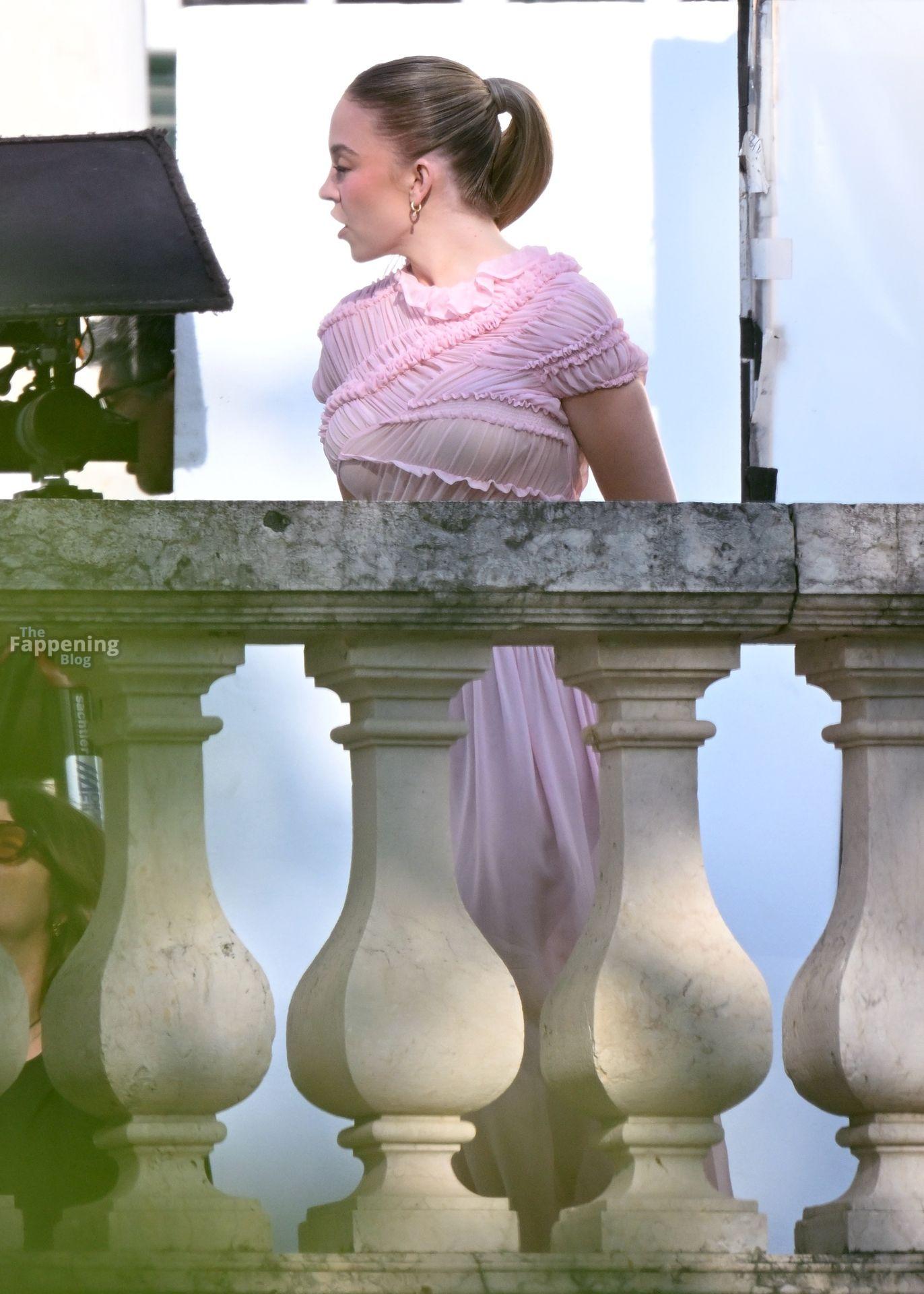 Sydney Sweeney is seen filming a campaign for haircare brand Kerastase in Lisbon, Portugal.