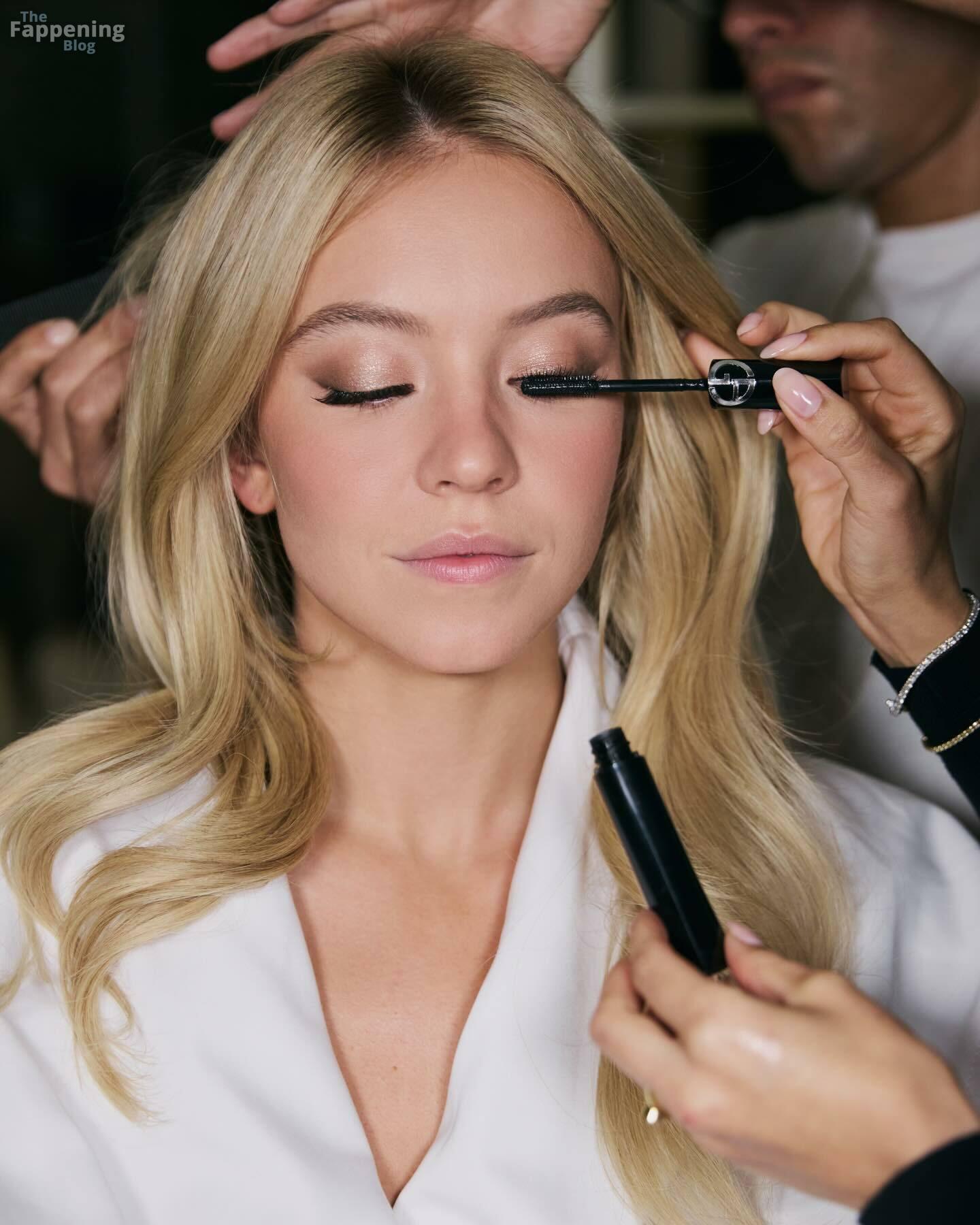 Sydney Sweeney displays her tits, posin’ in a plunging white dress for Sarah Krick’s shoot before the main event.