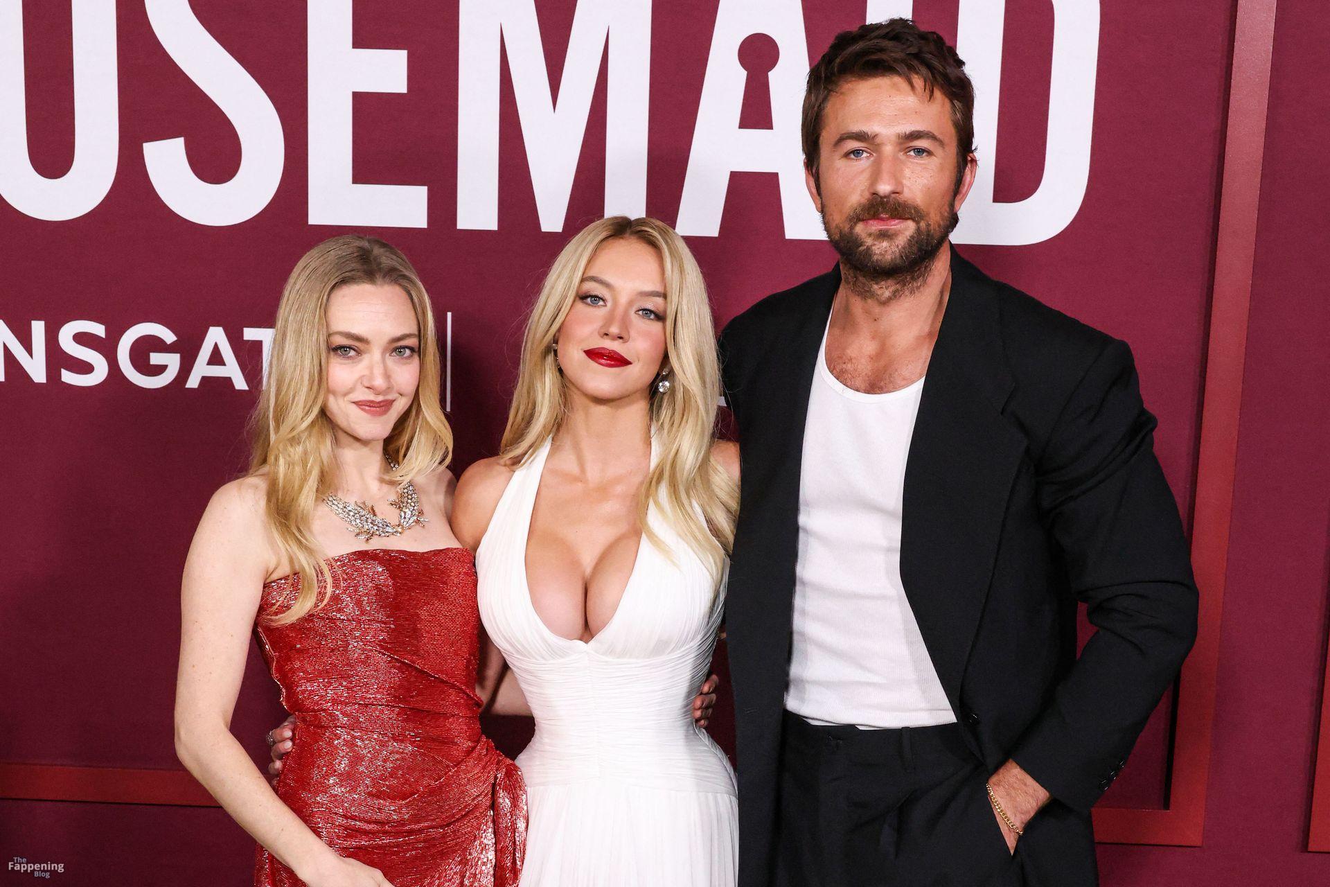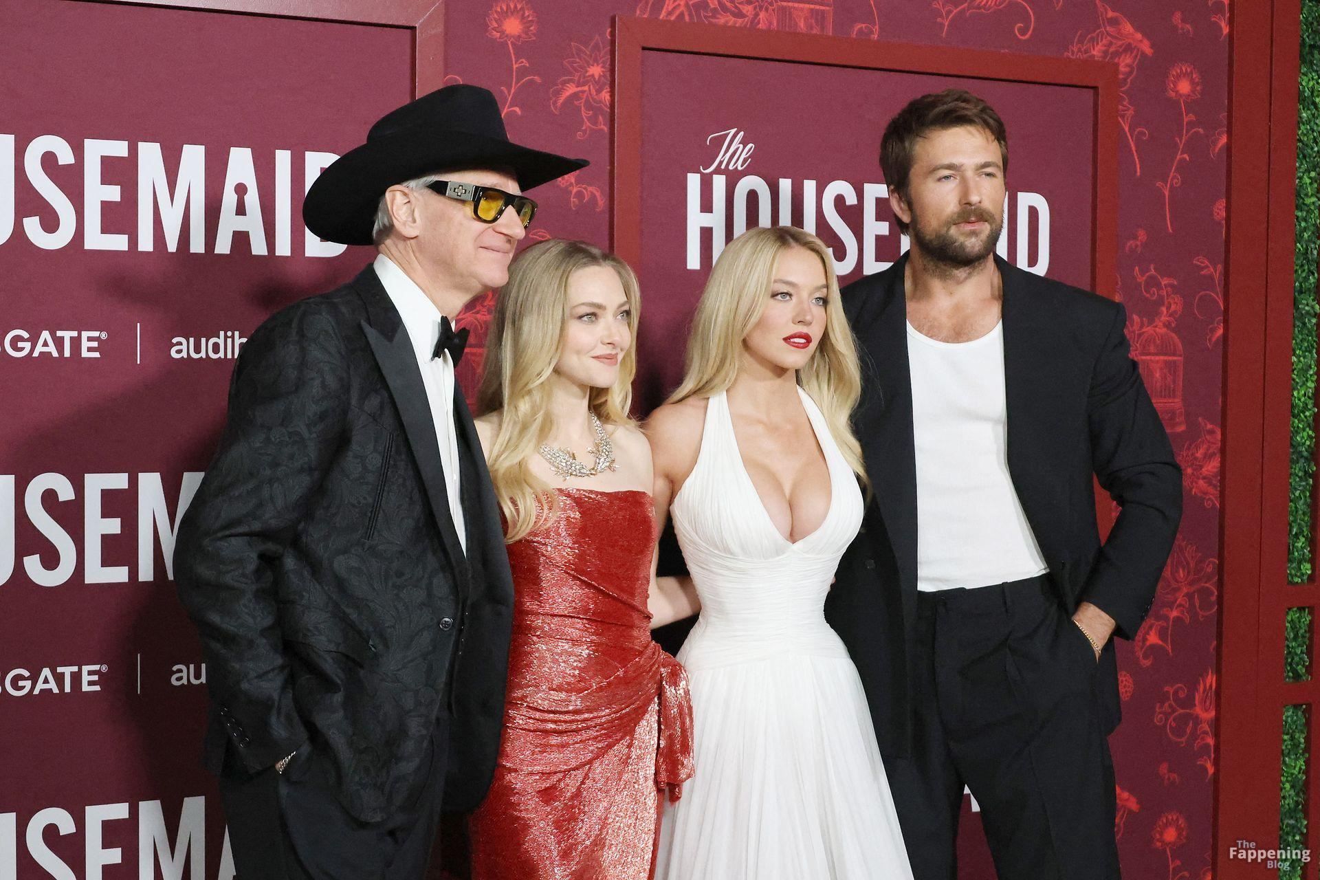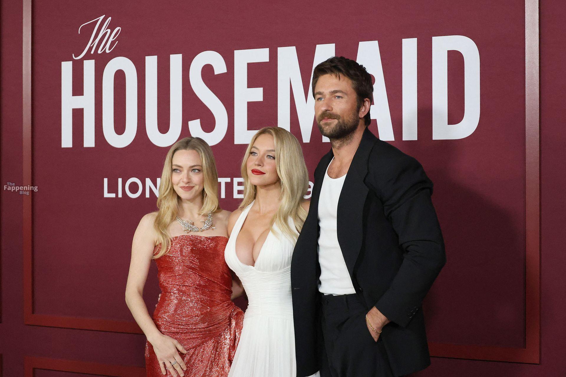 Peep Sydney Sweeney’s huge breasts at “The Housemaid” premiere. She posed on the red carpet, wearin’ a white gown.
