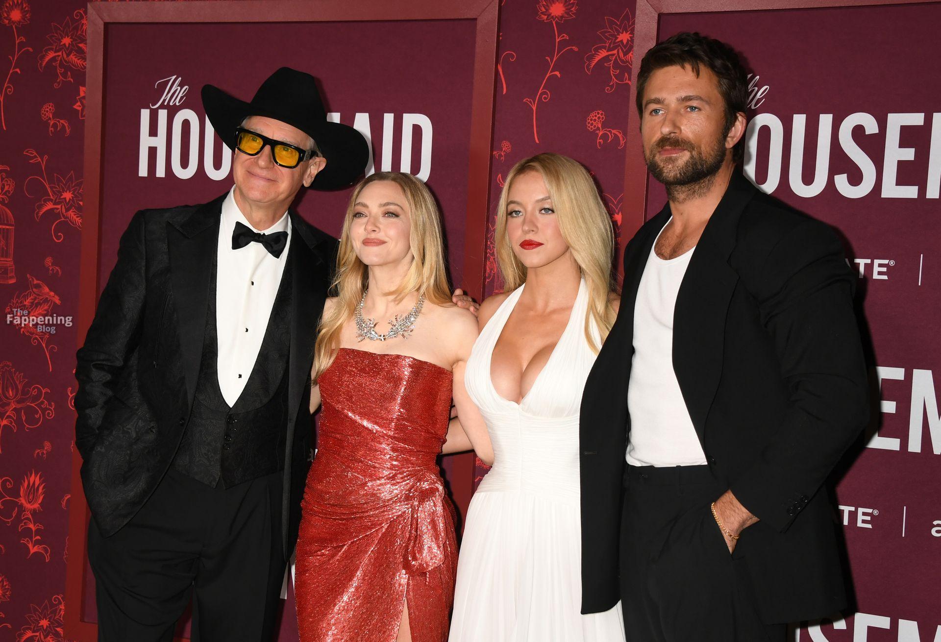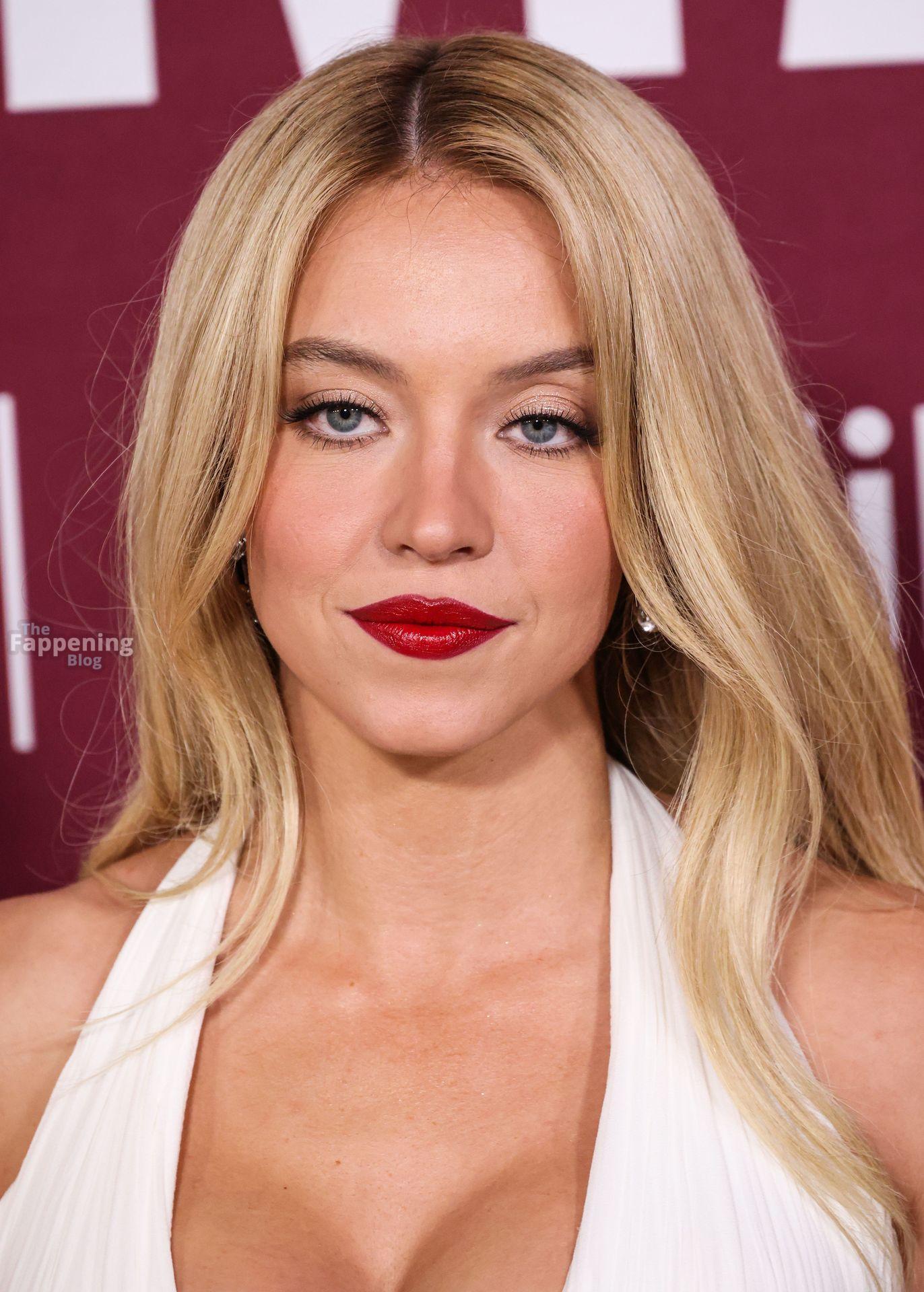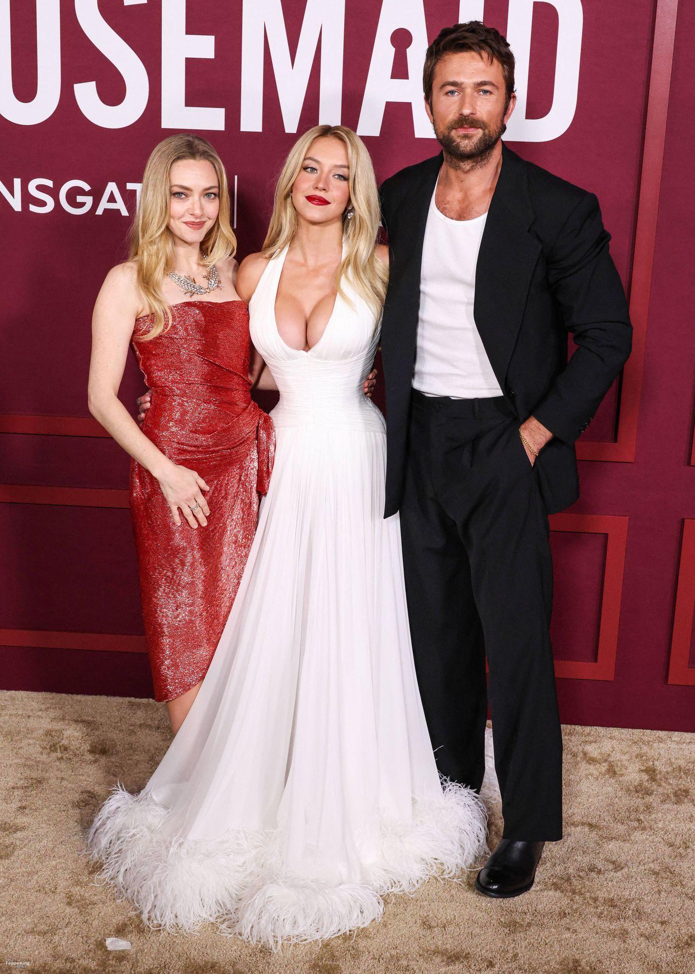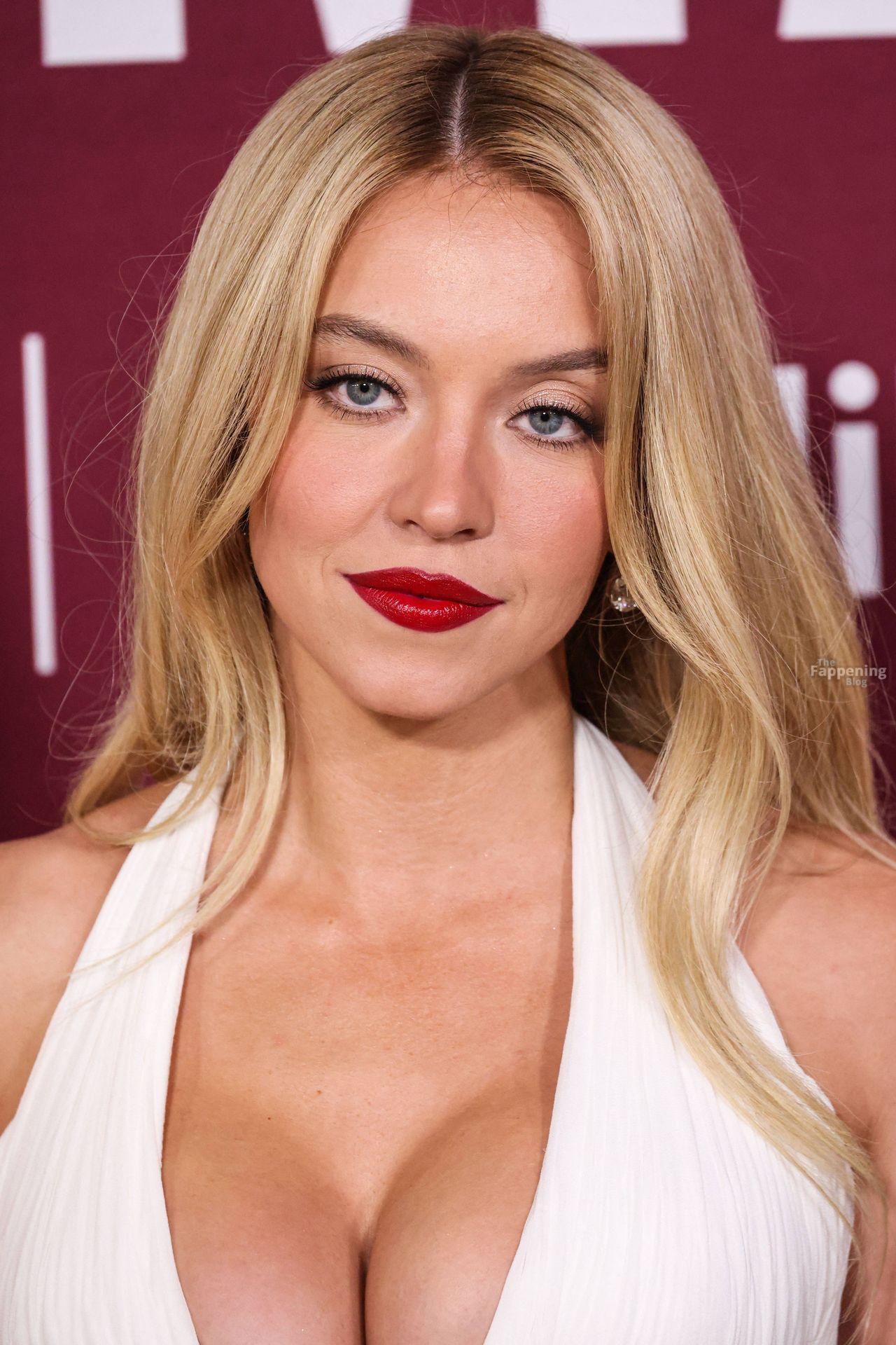 Peep Sydney Sweeney’s huge breasts at “The Housemaid” premiere. She posed on the red carpet, wearin’ a white gown.