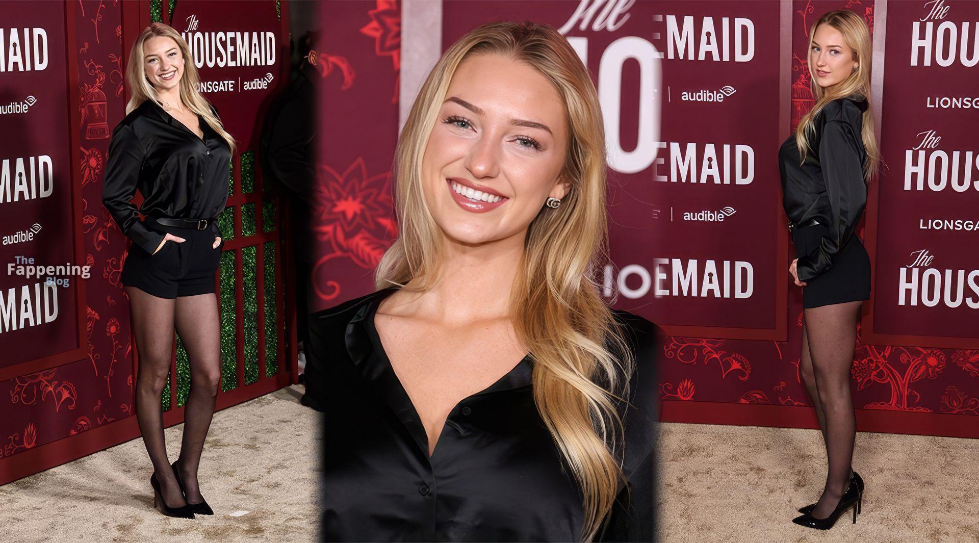 American TikTok star Sydney Thomas stuns at “The Housemaid” at the TCL Chinese Theater IMAX premiere in sexy shorts and sheer pantyhose.