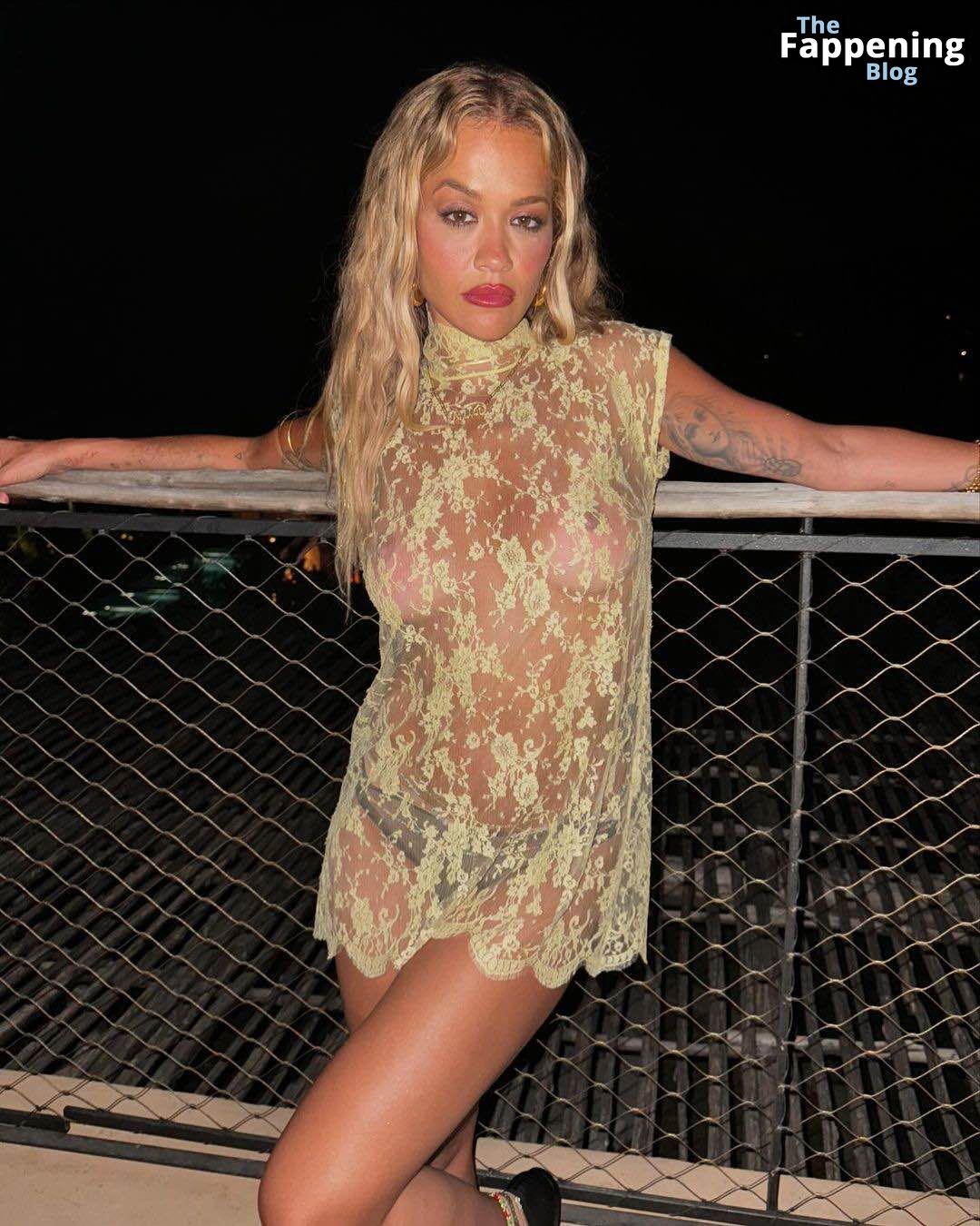 Rita Ora Shows Off Her Nude Boobs While Posing in a Sheer Dress (2 Photos)