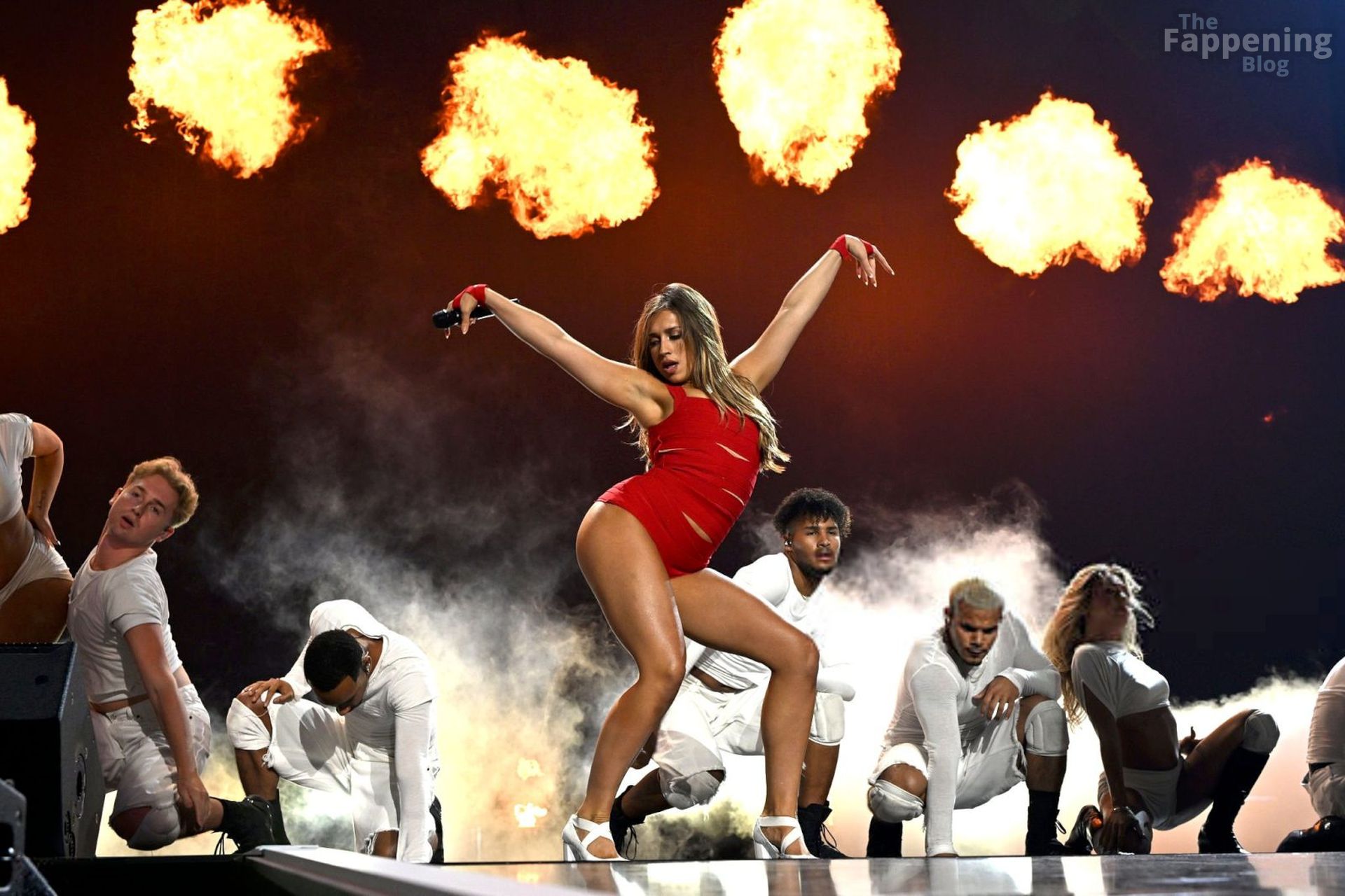 Canadian singer-songwriter and dancer Tate McRae’s ass, cleavage, and thighs owned iHeartRadio Vegas, bendin’, splittin’, and grindin’ in that skin-tight red bodysuit.