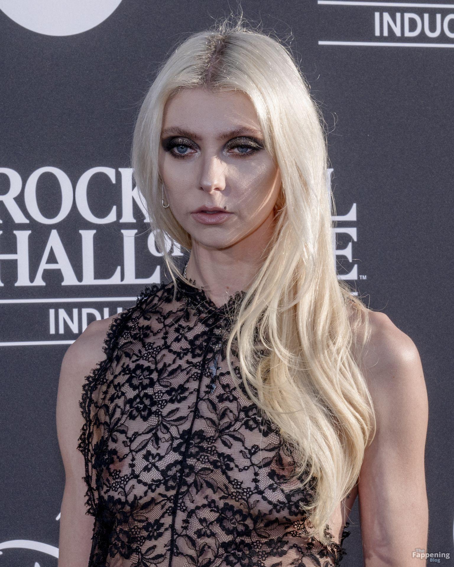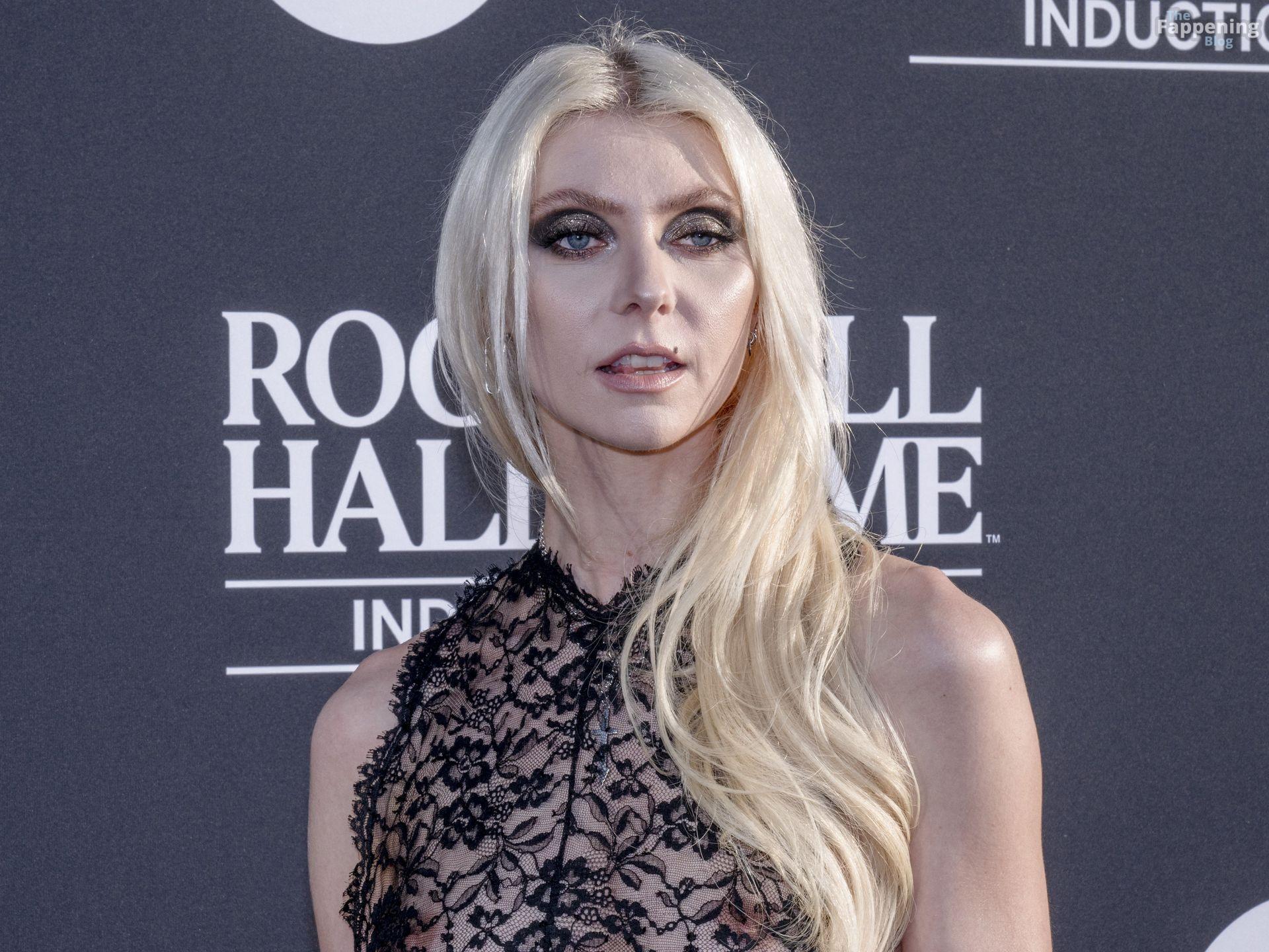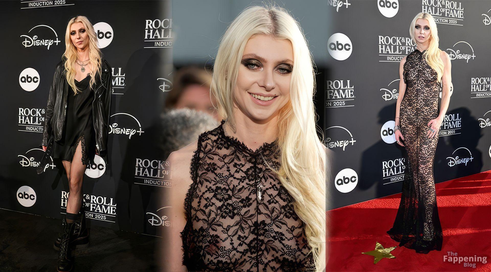Taylor Momsen, the lead singer of The Pretty Reckless, rolled up to the Rock & Roll Hall of Fame Induction Ceremony in LA on November 8, 2025, rockin’ a sheer black lace halter gown that left her nude tits on full display.