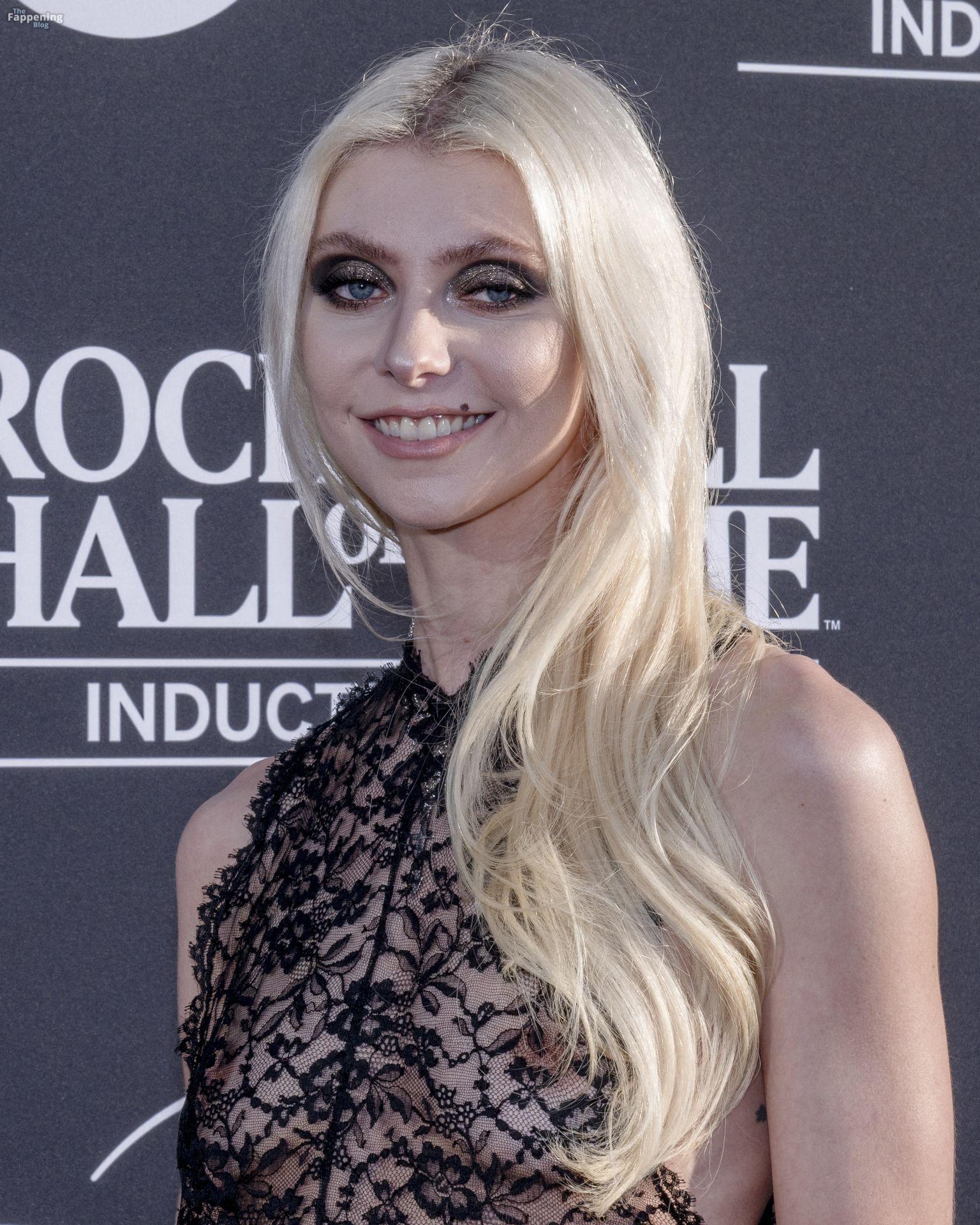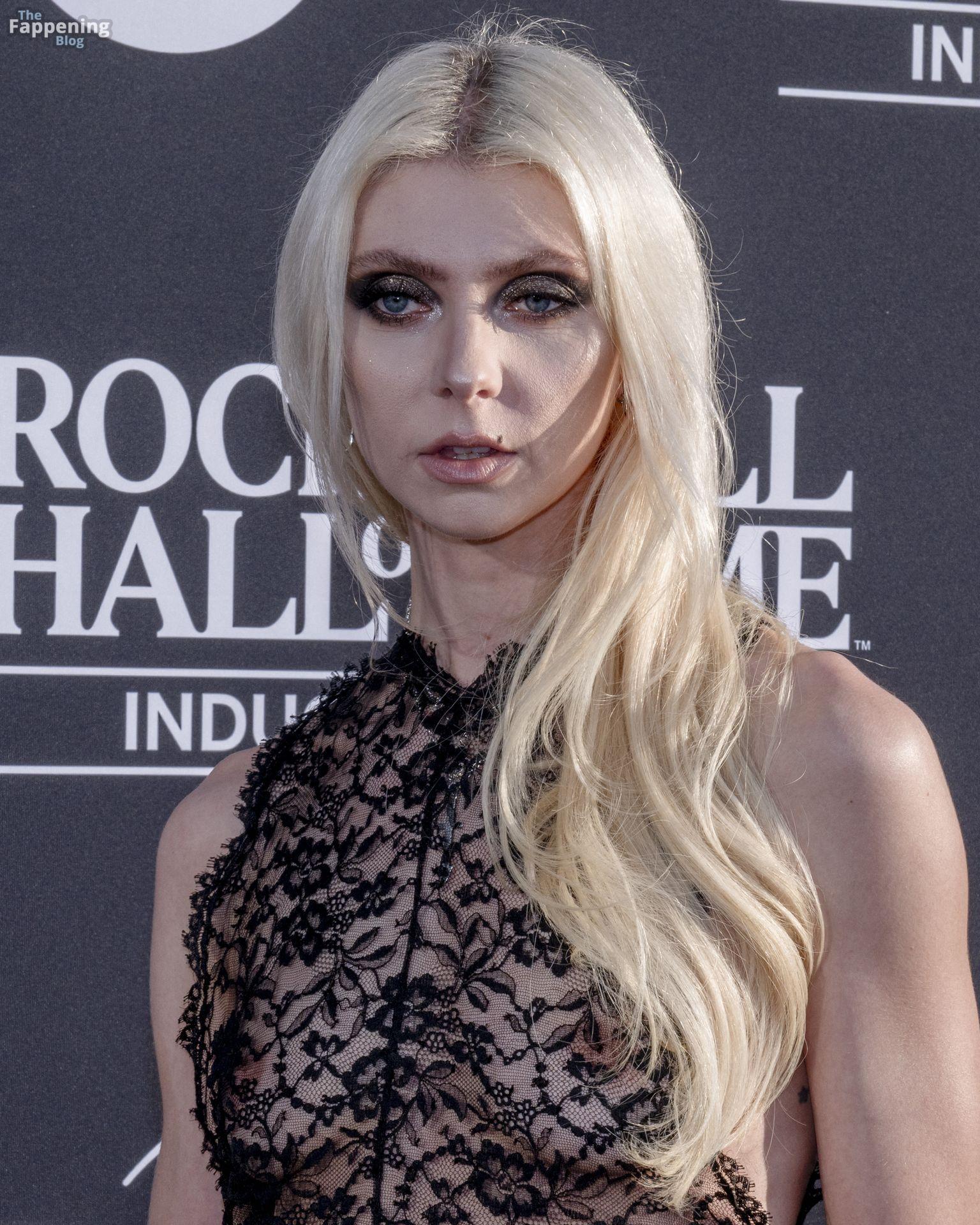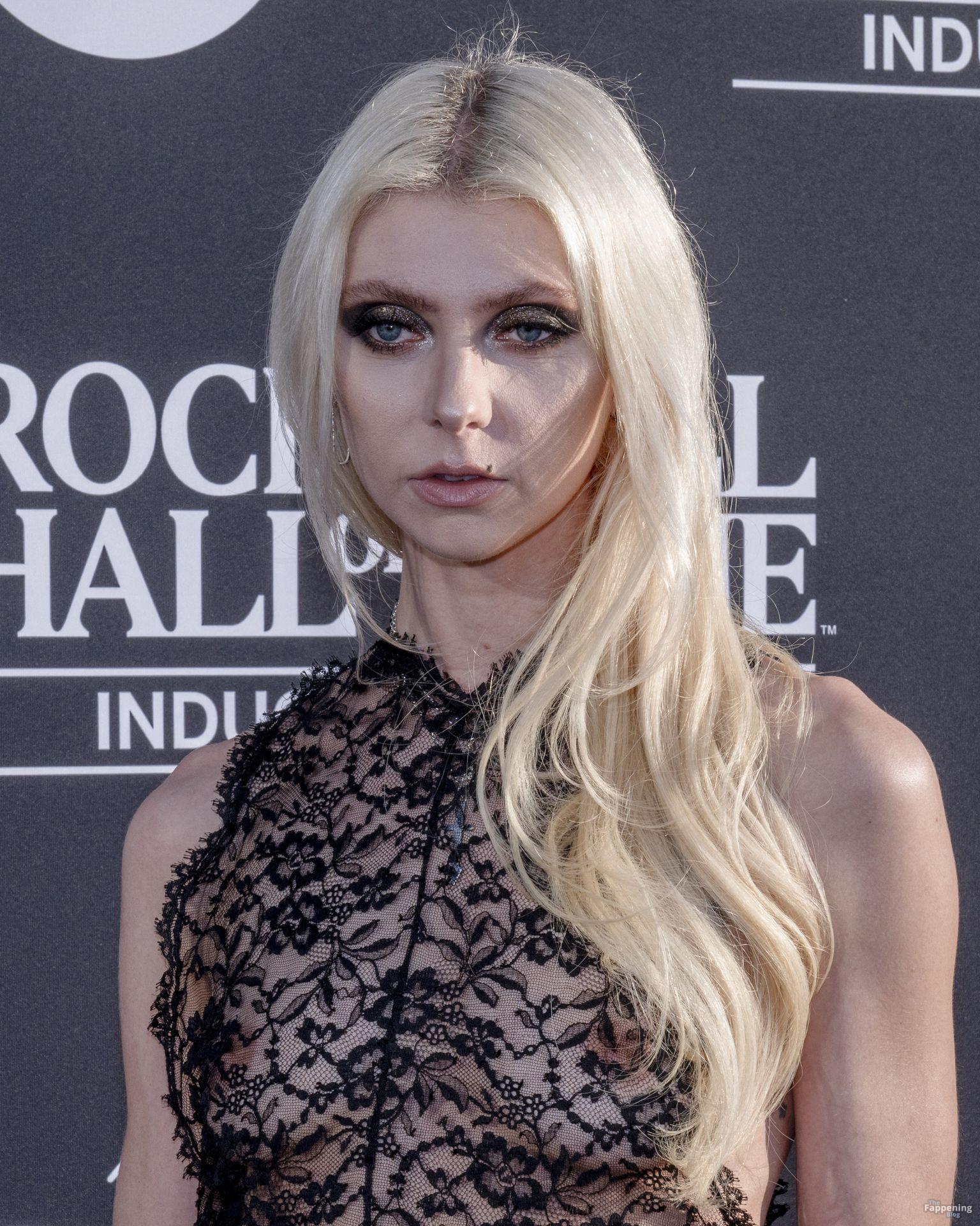 Taylor Momsen, the lead singer of The Pretty Reckless, rolled up to the Rock & Roll Hall of Fame Induction Ceremony in LA on November 8, 2025, rockin’ a sheer black lace halter gown that left her nude tits on full display.