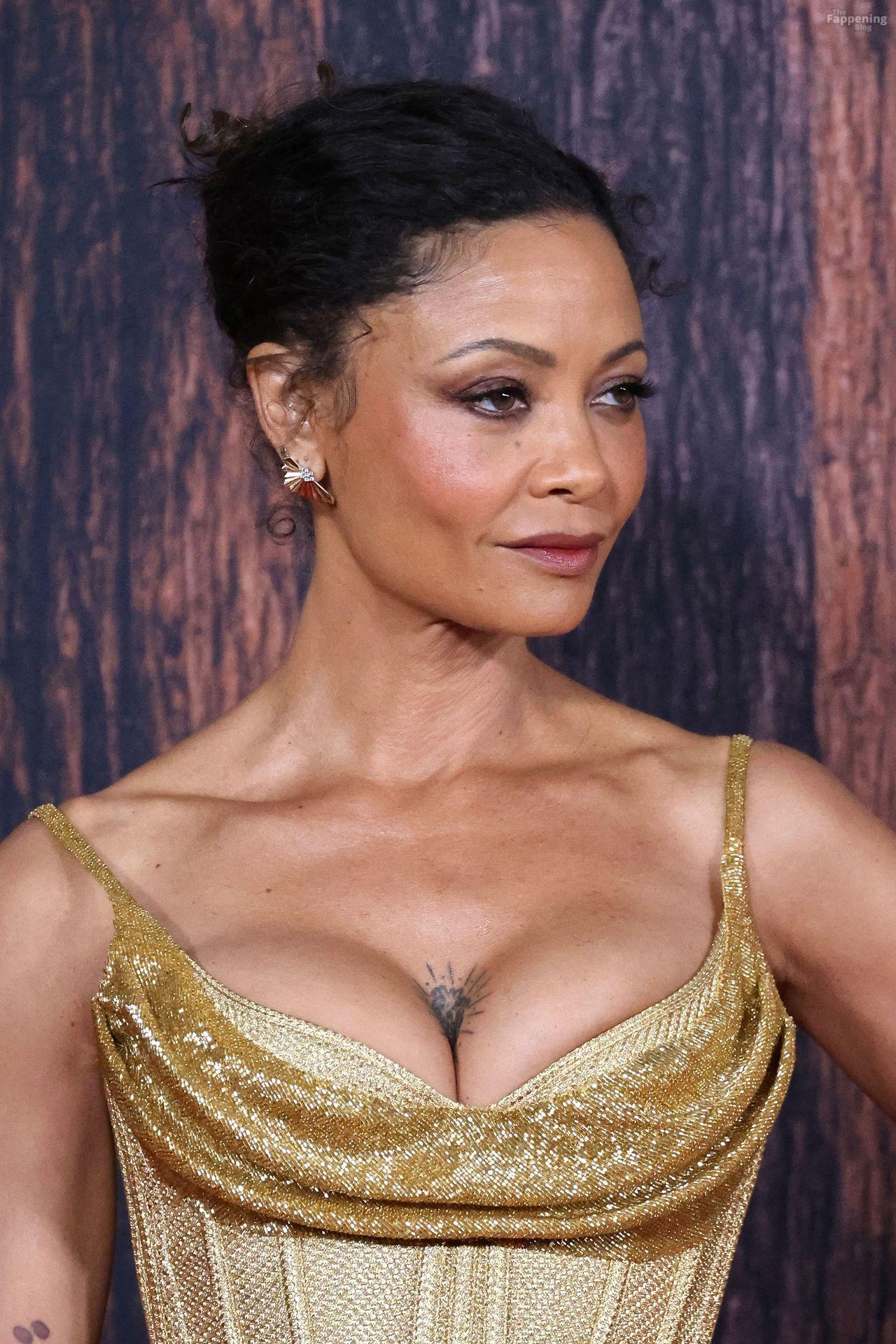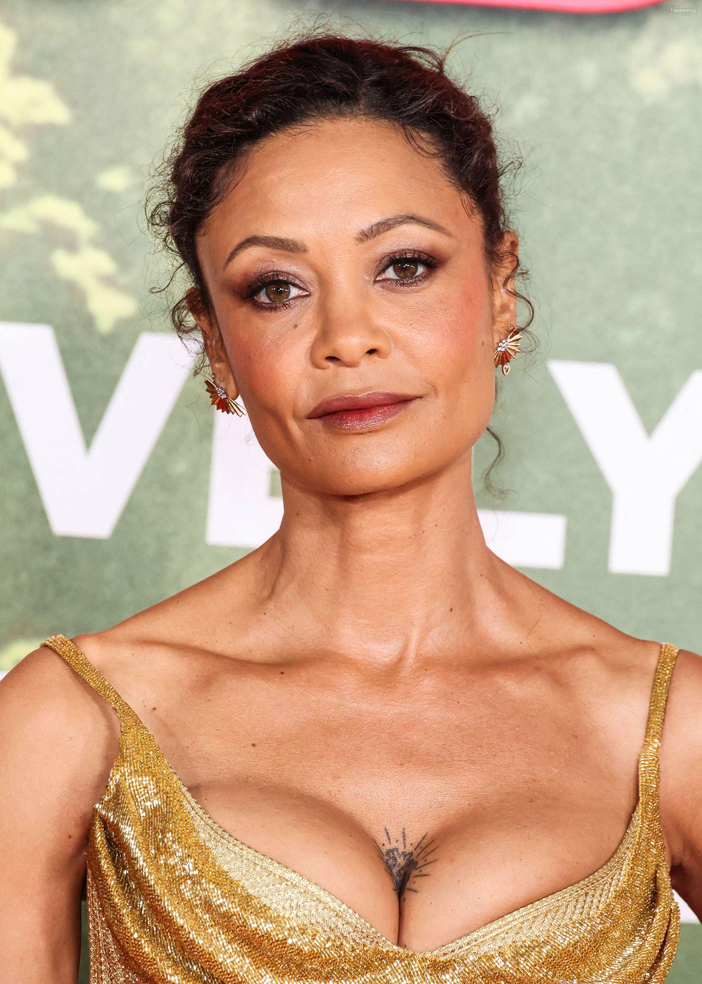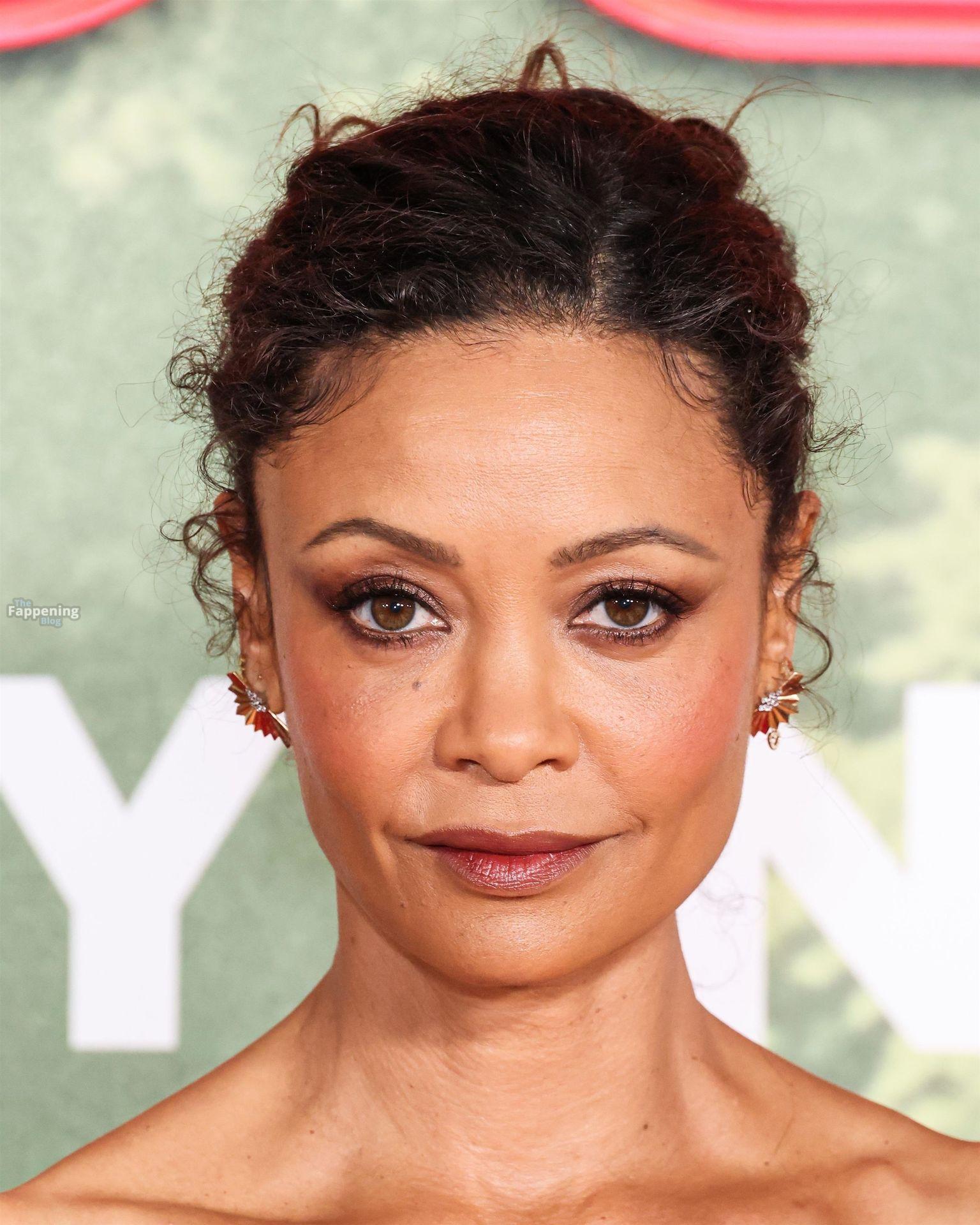 Thandie Newton (53) stuns in a golden dress at the “Anaconda” premiere at the United Theater on Broadway in Los Angeles. Check out her stunning red carpet photos below.